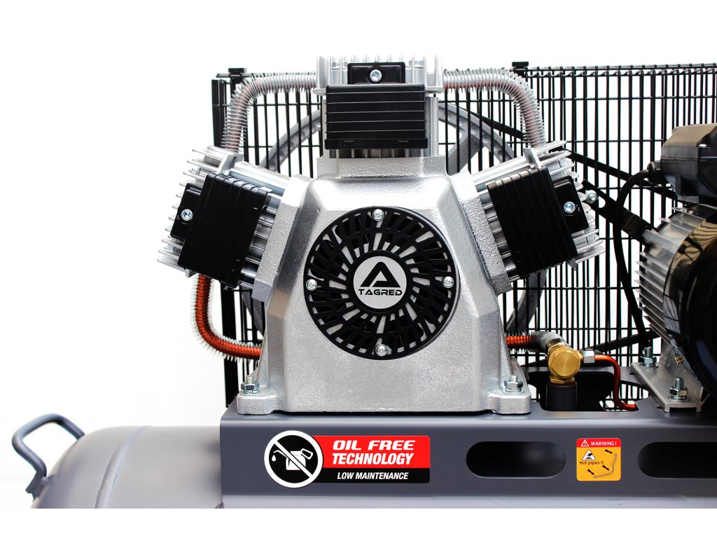 V bezolejovém kompresoru značky TAGRED byl použit funkční a prakticky bezúdržbový pístovo-membránový agregát. Použité řešení zajišťuje velmi tichý a efektivní provoz vzduchového kompresoru , který je možné používat v hospodářských i domácích prostorách.