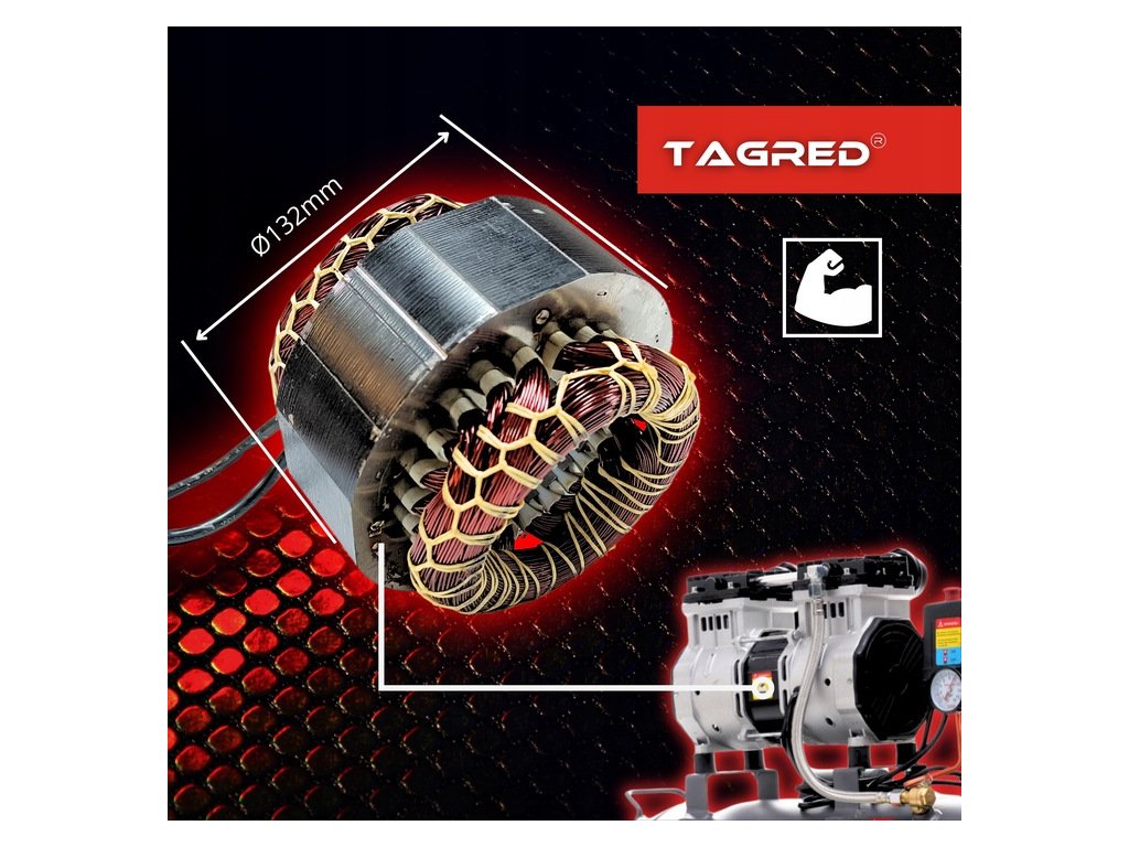 V bezolejovém kompresoru značky TAGRED byl použit funkční a prakticky bezúdržbový pístovo-membránový agregát. Použité řešení zajišťuje velmi tichý a efektivní provoz vzduchového kompresoru , který je možné používat v hospodářských i domácích prostorách.