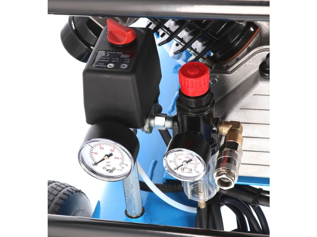 - Robustní konstrukce: Přímý pohon a dvoupístový kompresor zajišťují trvanlivost a efektivnost pracovního procesu.