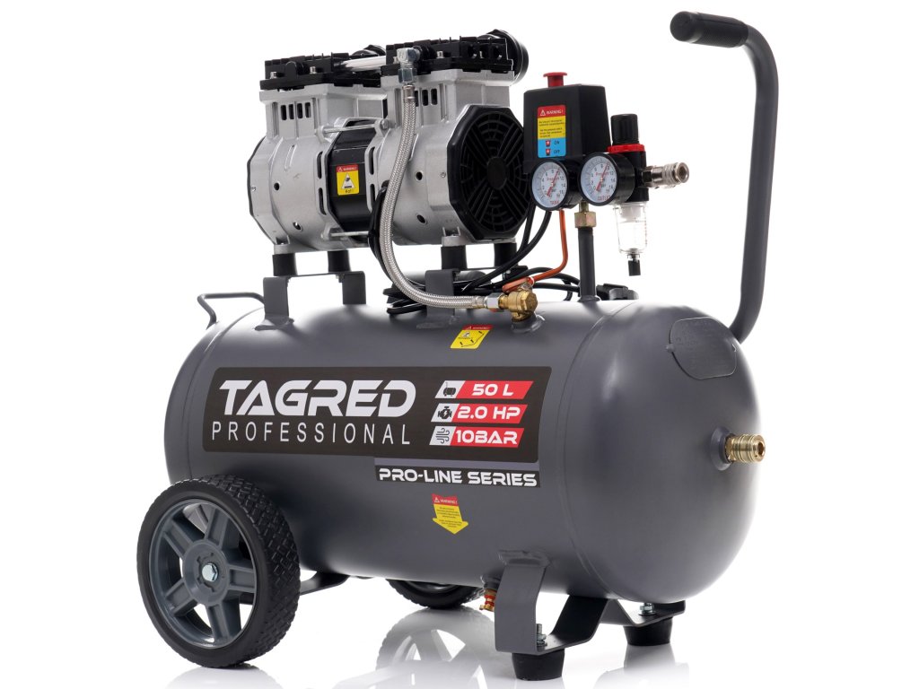 V bezolejovém kompresoru značky TAGRED byl použit funkční a prakticky bezúdržbový pístovo-membránový agregát. Použité řešení zajišťuje velmi tichý a efektivní provoz vzduchového kompresoru , který je možné používat v hospodářských i domácích prostorách.