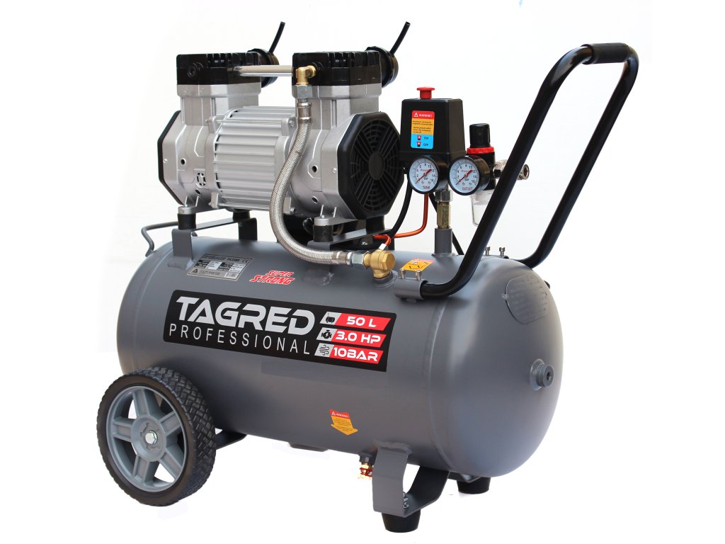 V bezolejovém kompresoru značky TAGRED byl použit funkční a prakticky bezúdržbový pístovo-membránový agregát. Použité řešení zajišťuje velmi efektivní provoz vzduchového kompresoru , který je možné používat v hospodářských i domácích prostorách.