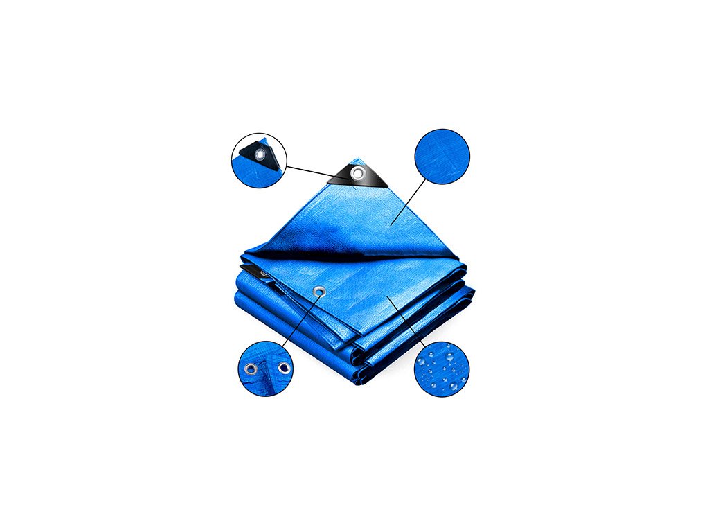 Modrá krycí plachta o rozměrech 4 x 6 metrů je vyrobena z polyetylenu. Z obou stran je navíc laminována a chráněna LDPE plastem. Plachta je nepropustná a je vybavena hliníkovými otvory. Přes tato oka můžete převléknout lano pro lepší upevnění celty, například při převozu nákladu. Krycí plachta má vyztužené rohy a má vysokou pevnost, vysokou hustotu, je UV odolná, voděodolná.