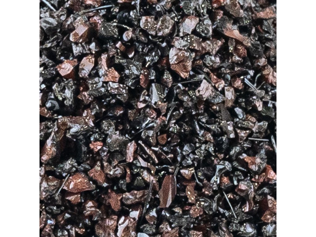Abrazivum se vyrábí z granulované měděné strusky, jejímiž hlavními složkami jsou komplexní, amorfní sloučeniny kyslíku typických sklotvorných složek, přičemž oxid křemičitý se vyskytuje ve vázaném stavu. Materiál na pískování neobsahuje volné kovy ani azbest.