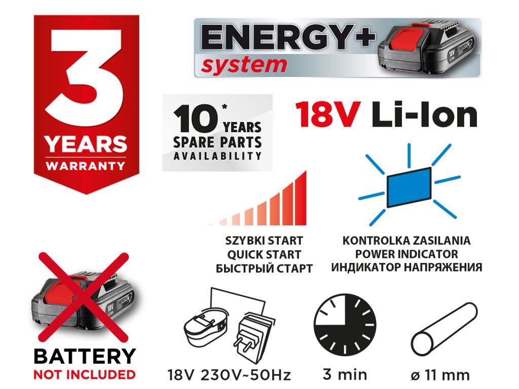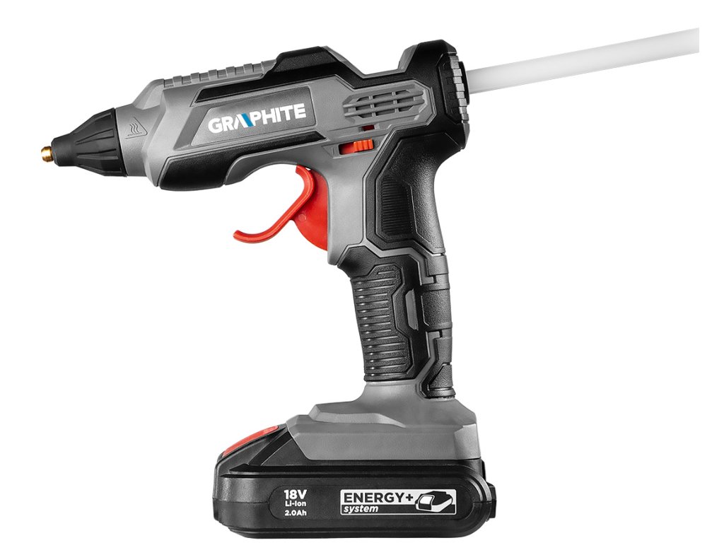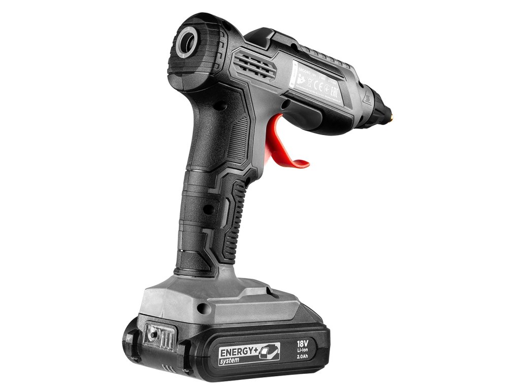 Lepicí pistole Energy+ pro lepící kazety o průměru 11 mm. Používá se k lepení materiálů, jako je papír, kůže, textil, karton, plasty, dřevo, kov, korek, kámen. Praktické, tepelně odolné pouzdro. Lepicí hrot pro přesné nanášení lepidla. Ideální pro dílnu pro kutily. Součástí balení jsou 3 kazety. Vlastnosti výrobku: pogumovaná rukojeť, ochranný kryt hlavy proti popálení během práce, doba zahřátí pistole je jen 3 minuty, kompatibilní s univerzálními lepicími kazetami o průměru 11 mm. Technické údaje: napětí 18 V, průměr lepicí kazety 11 mm, teplota topného tělesa 160 °C - 210 °C, doba zahřívání: 3 min, výkon: 8 g/min, hmotnost: 0,4 kg.