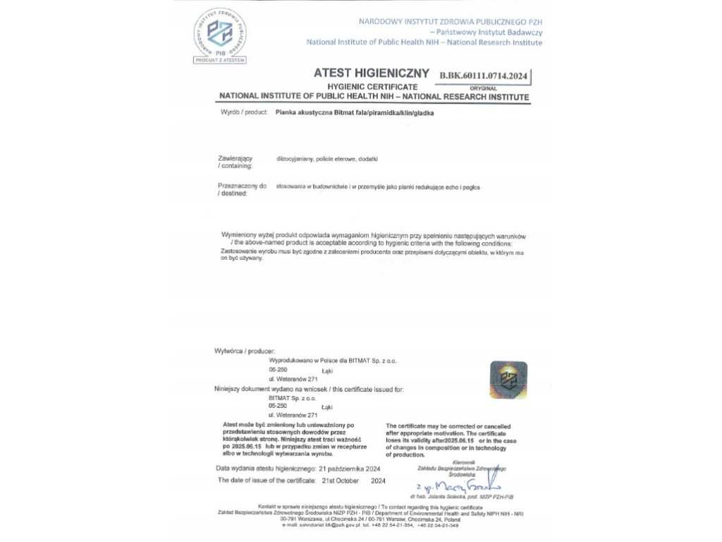 - Hygienický certifikát PZH – bezpečný pro zdraví