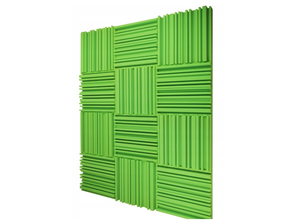 Akustický panel Equalizer 50×50×7 cm, světle zelený; snižuje echo a dozvuk, snadná montáž, stabilní PU pěna.