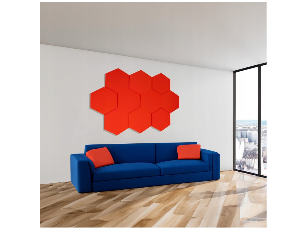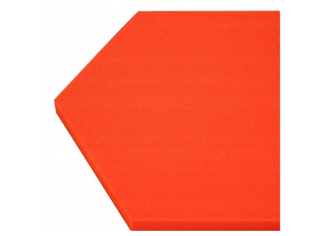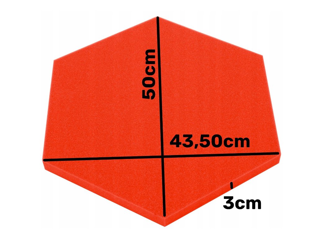 Dekorační akustický panel hexagon 50×50 cm, 3 cm. PU pěna Bitmat AF-25, snižuje echo, snadná montáž. Červený.