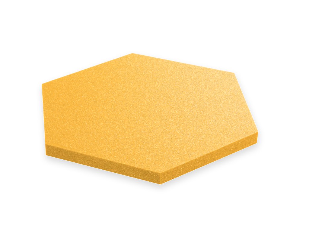 Dekorační akustický panel hexagon 50×50 cm, 3 cm. PU pěna Bitmat AF-25, snižuje echo, snadná montáž. Žlutý.