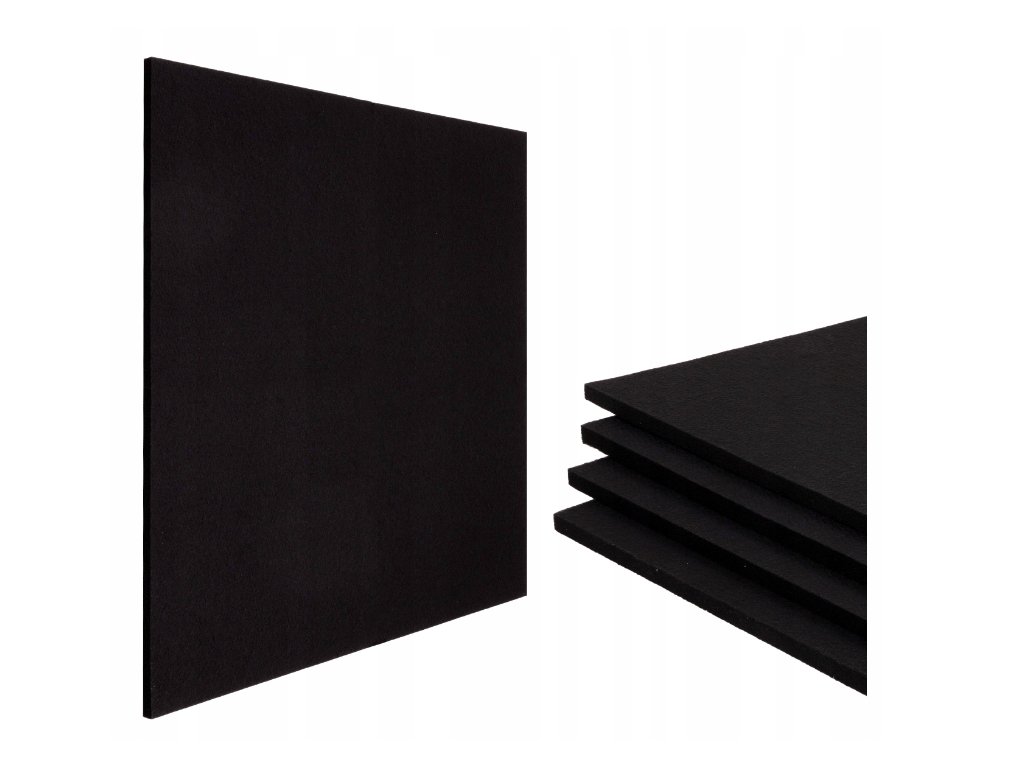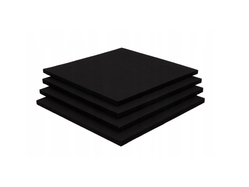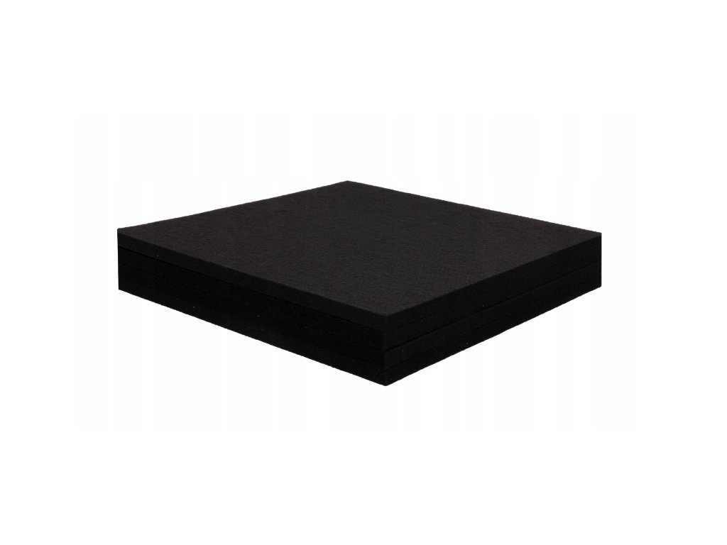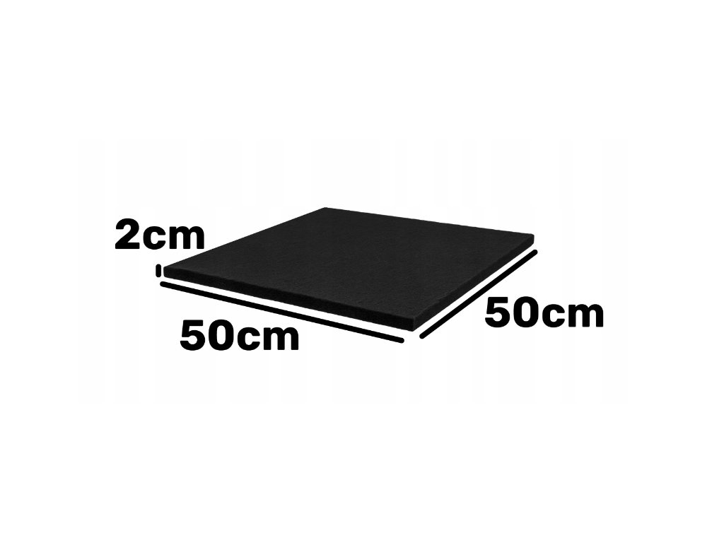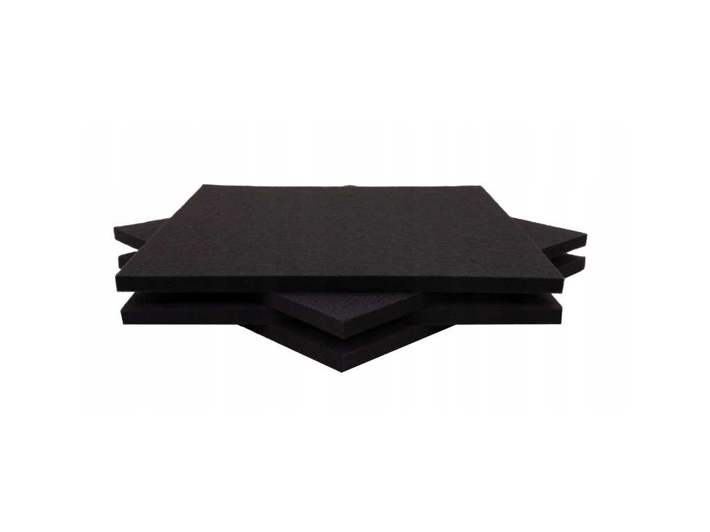 Polyesterový akustický panel 50×50×2 cm. Redukuje echo, pružný, voděodolný, nekrouší se. Barva: černá.