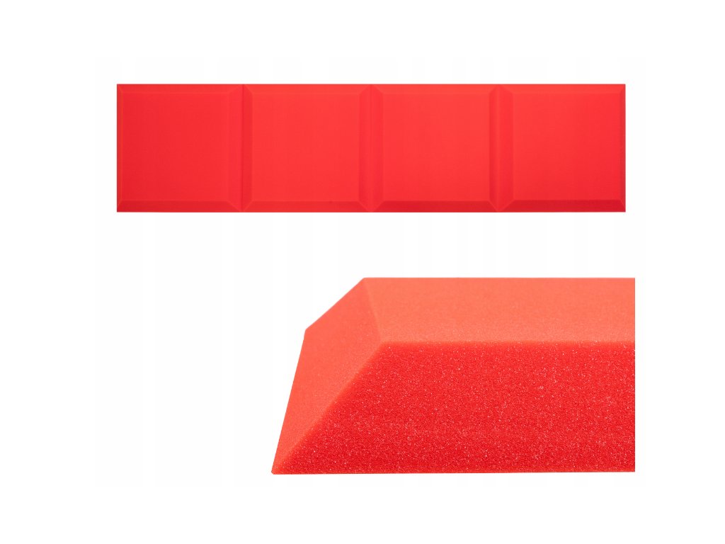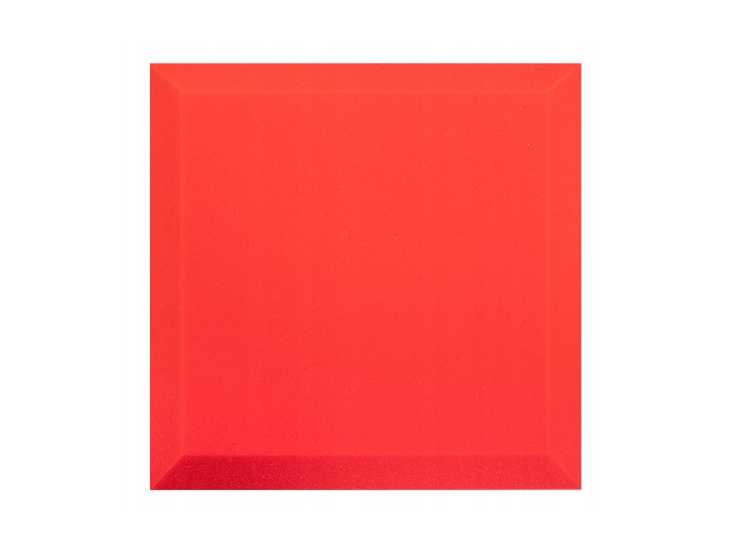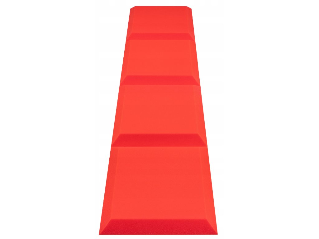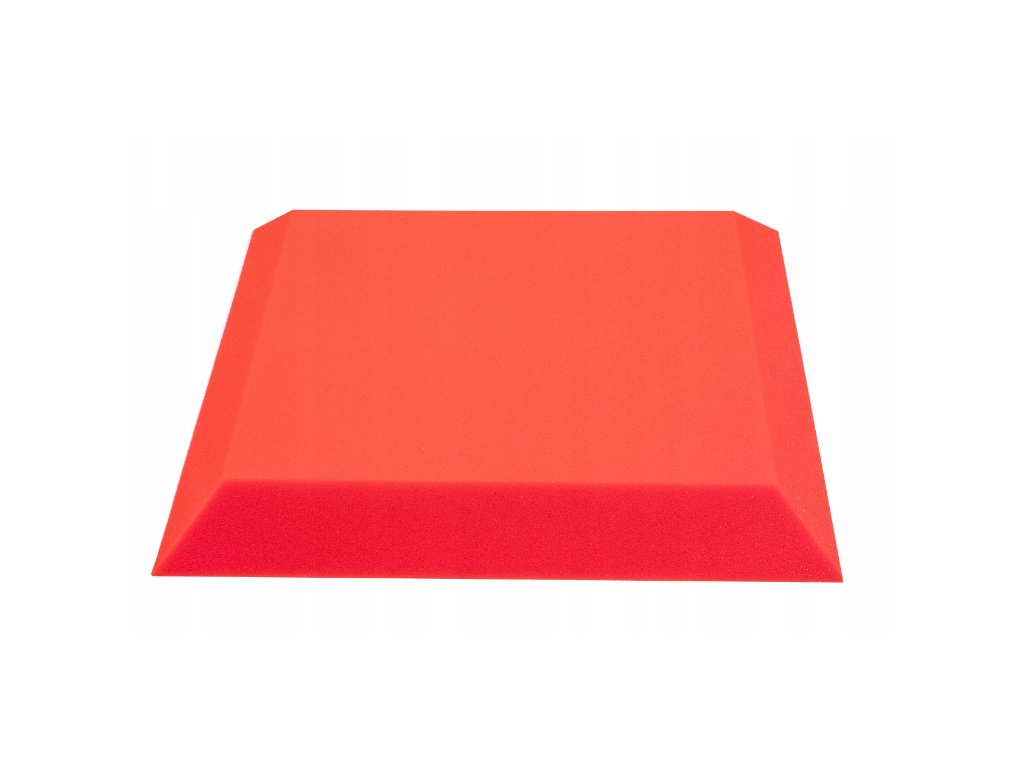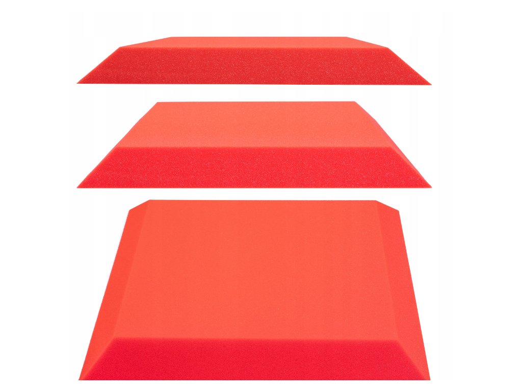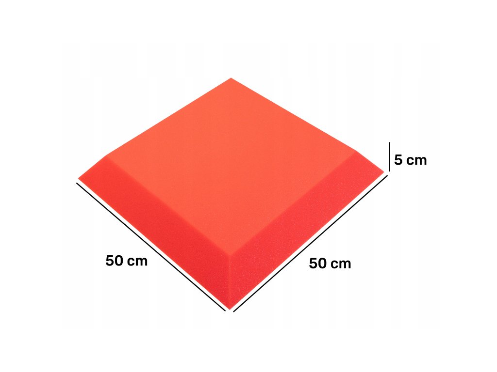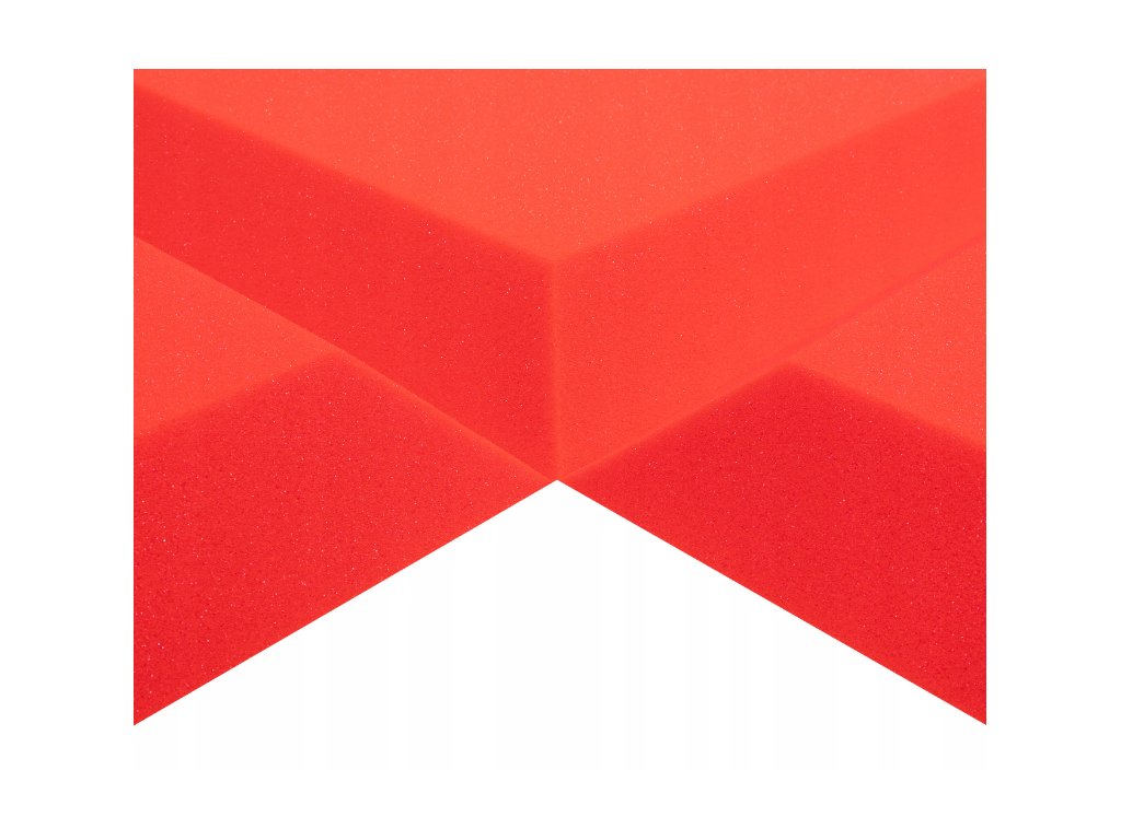 PU akustická pěna Bitmat AF-25, trapéz 50×50×5 cm. Snižuje echo a dozvuk, montáž lepidlem/páskou. Barva: červená.