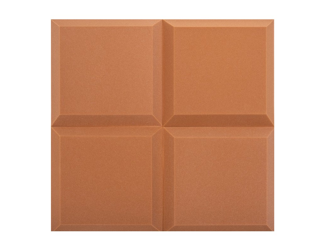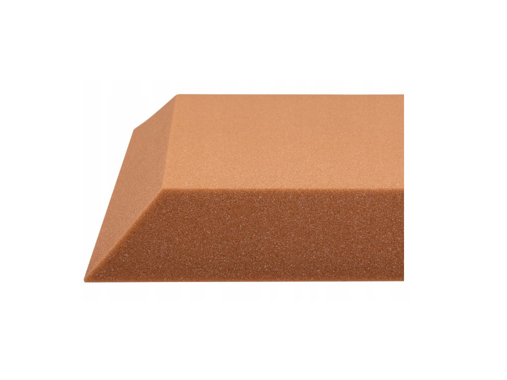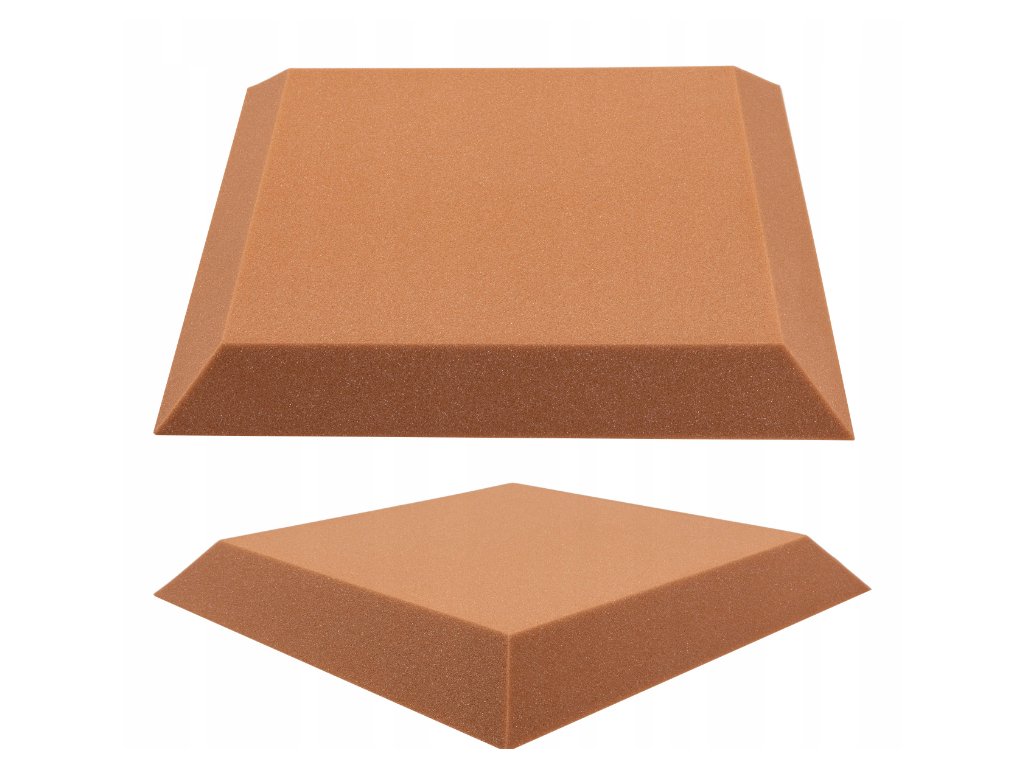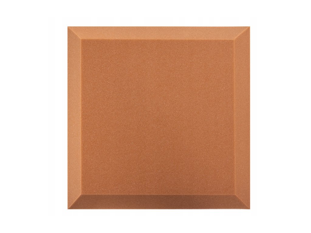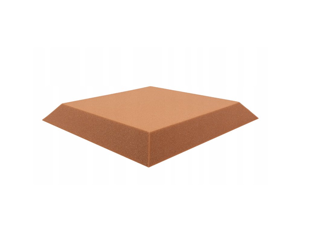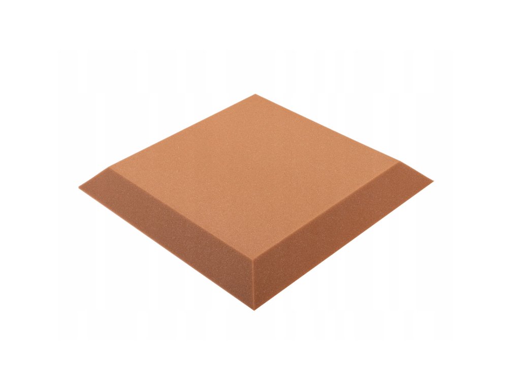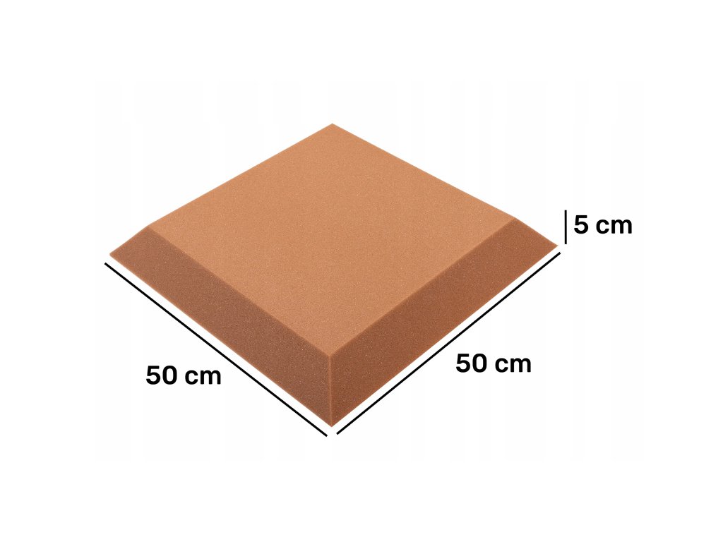 PU akustická pěna Bitmat AF-25, trapéz 50×50×5 cm. Snižuje echo a dozvuk, montáž lepidlem/páskou. Barva: hnědá.
