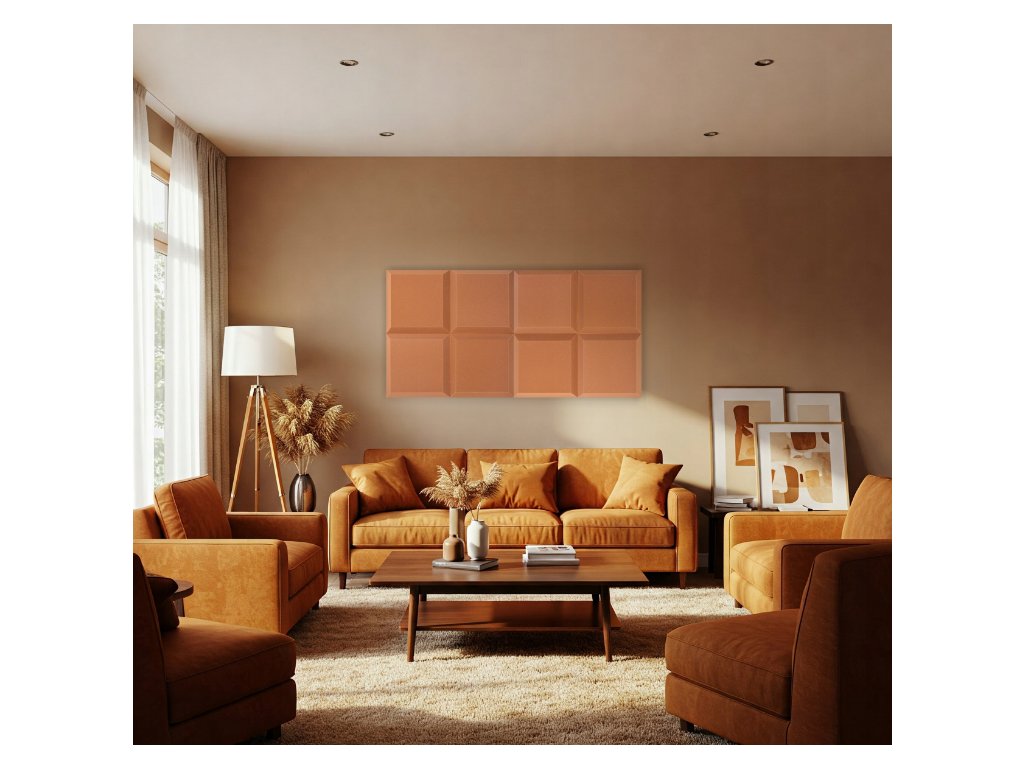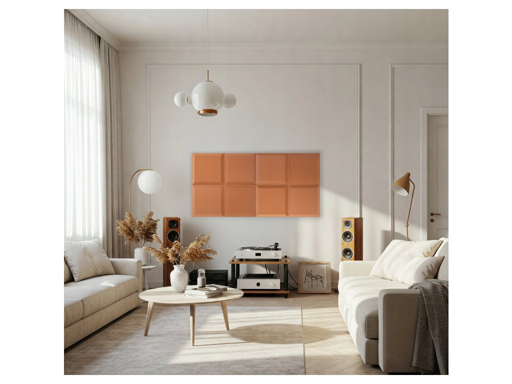 - Panely jsou určeny pro akustickou úpravu interiéru (odrazy v místnosti), nikoli pro odhlučnění od sousedů nebo kročejový hluk.