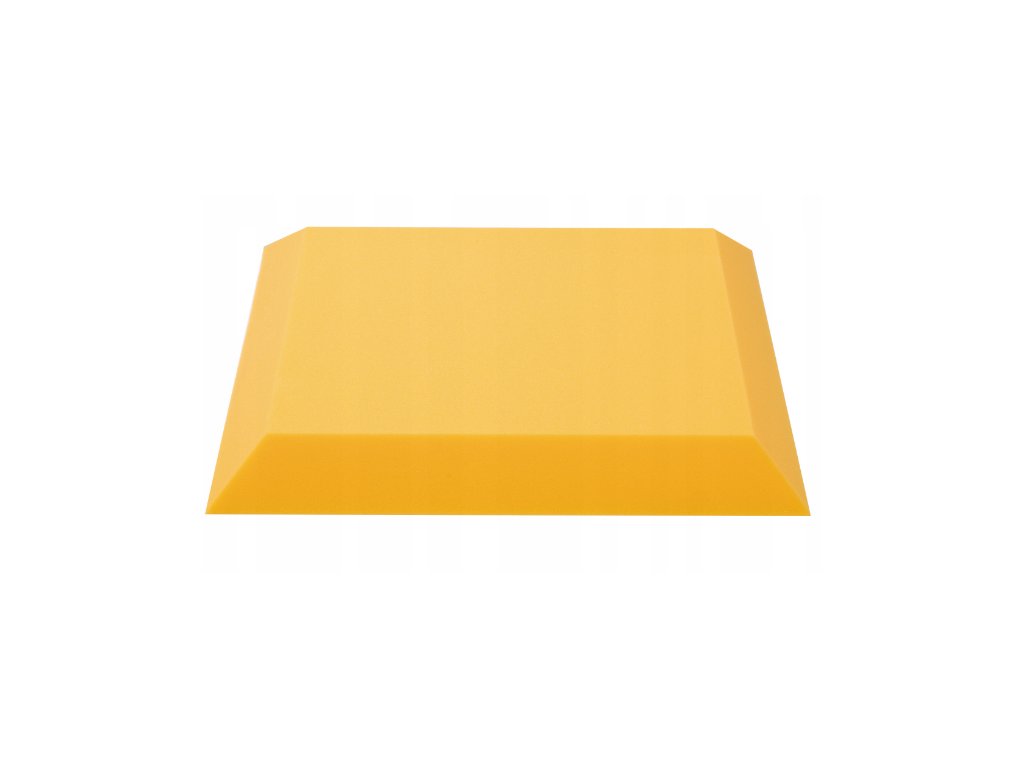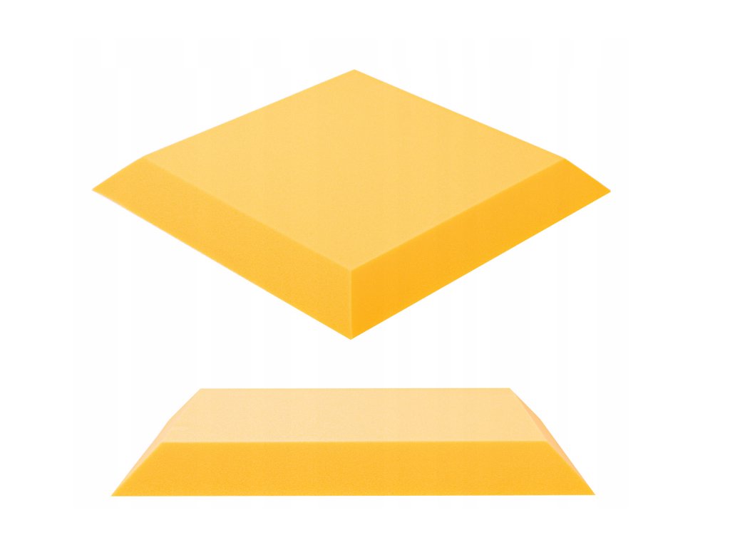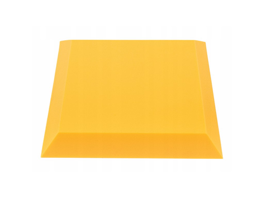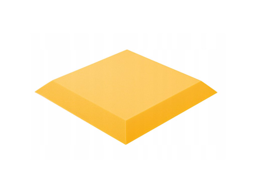 PU akustická pěna Bitmat AF-25, trapéz 50×50×5 cm. Snižuje echo a dozvuk, montáž lepidlem/páskou. Barva: žlutá.