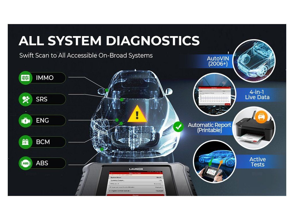 Launch Creader Elite 2.0 umožňuje číst a mazat chybové kódy, provádět obousměrné aktivní testy, resetovat funkce systému a získávat podrobné údaje ze všech hlavních systémů vozidla. Podporuje automatickou identifikaci vozidla (AutoVIN) a manuální vyhledávání systémů, což umožňuje rychlou a efektivní diagnostiku.