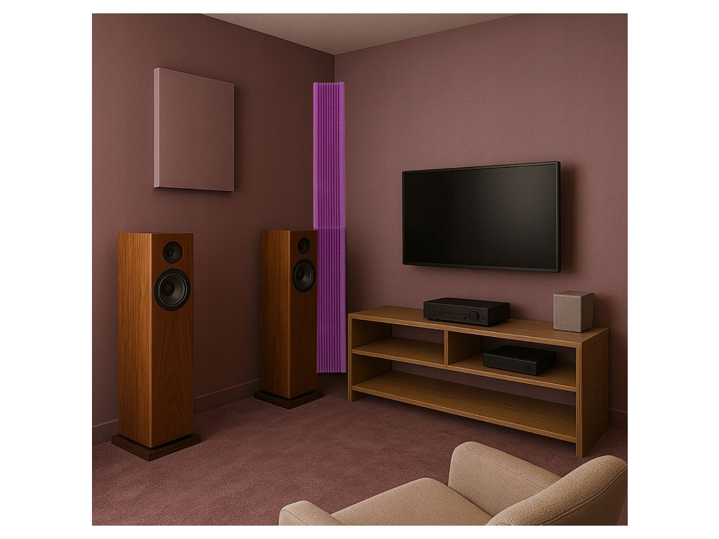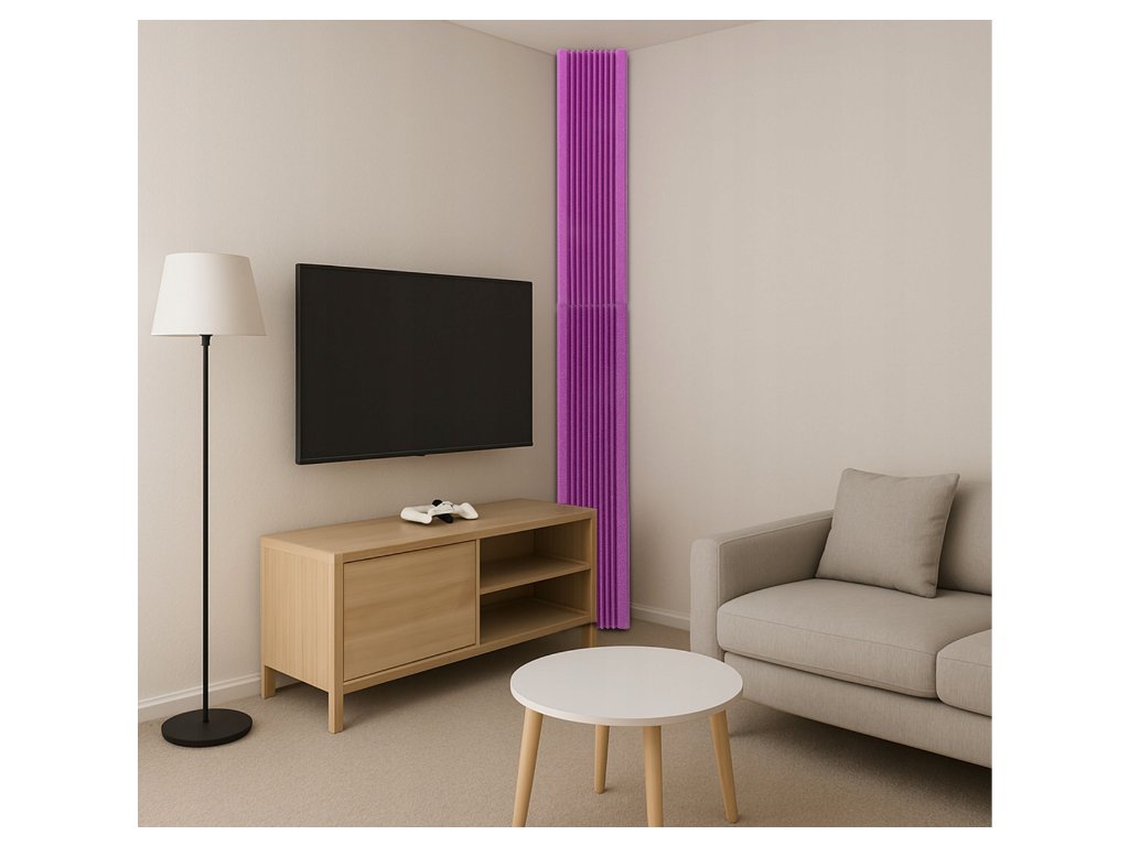 Basová akustická pasta 100 × 28 cm je určena k montáži do rohů místnosti – přesně tam, kde se nejvíce hromadí energie nízkých frekvencí. Pomáhá snížit dunění basů, upřesnit poslech a zlepšit srozumitelnost řeči i zpěvu v domácím studiu, herně či domácím kině.