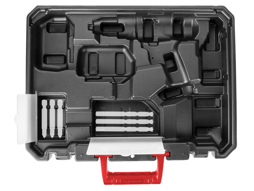 Kufřík pro vrtačky GRAPHITE Energy+ umožňuje uložit přístroj a příslušenství a udržovat je v pořádku. Kufřík je vhodný pro vrtačky a šroubováky řady Energy+. Obsahuje také nabíječku, 2 baterie a nádobu s příslušenstvím. Kufřík má pohodlnou rukojeť a je upevněn kovovými sponami.