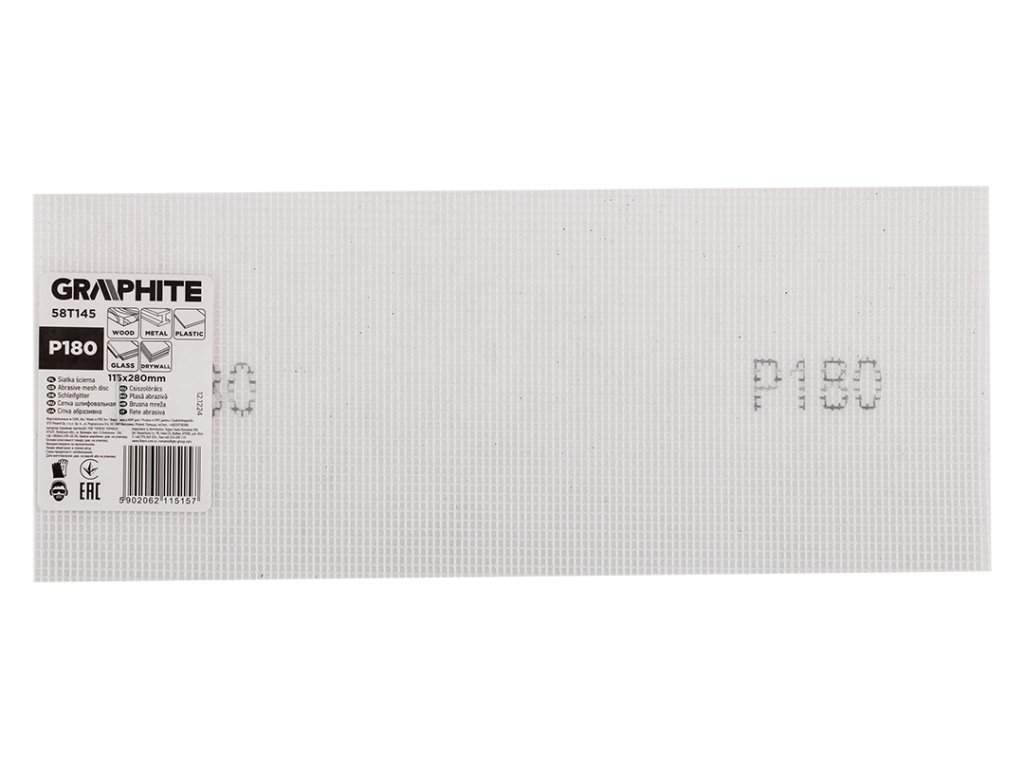 Brusná mřížka bílá 115 x 280 mm, P180 58T145 značky GRAPHITE doporučená pro ruční použití na dřevo, kov, plast, sklo a sádrokarton. Vyznačuje se oboustrannou zrnitostí a bílým zrnem jemného elektrokorundu. Jedná se o vodotěsnou, snadno čistitelnou síťku GRAPHITE, která se flexibilně přizpůsobuje povrchu. Díky oboustranné zrnitosti je práce s ní hospodárná a efektivní. Osvědčí se při mnoha úkolech.
