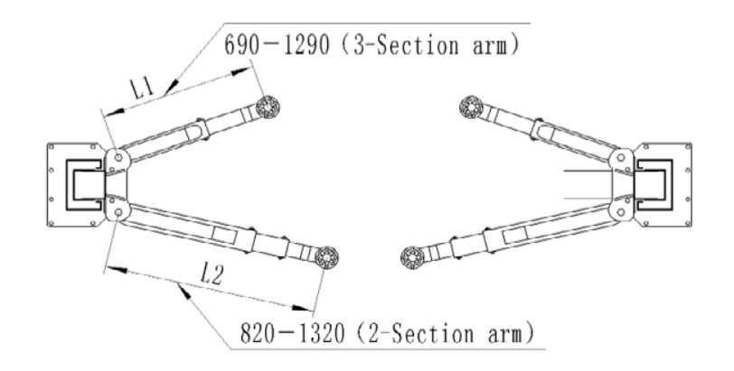 Asymetrická ramena (přední kratší, zadní delší) jsou navržena tak, aby vytvářela optimální rovnováhu zvedaného vozidla. Teleskopická funkce navíc umožňuje pohodlně nastavit rameno na potřebnou délku.