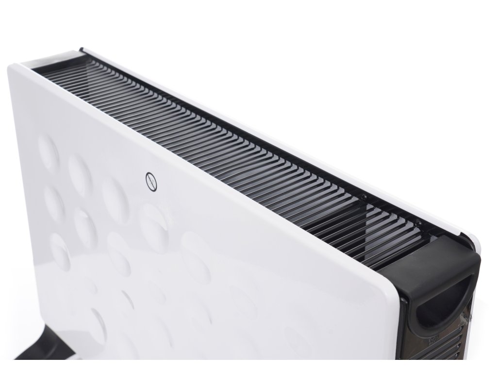 Konvektorový ohřívač se třemi výkony, tichým TURBO ventilátorem, nastavitelným termostatem, ochranou proti přehřátí a zamrznutí, bezpečný a přenosný.