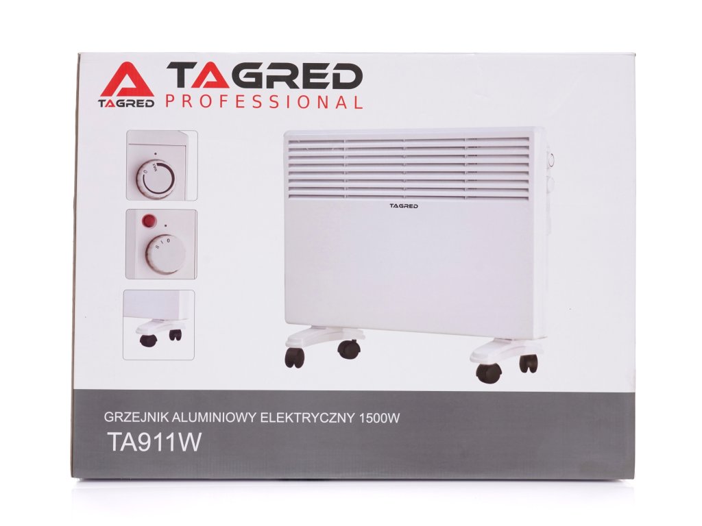 - Ohřívač lze namontovat na zeď nebo postavit na nožičky vybavené kolečky.