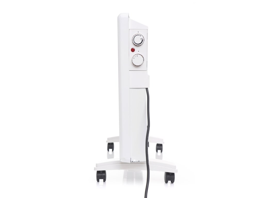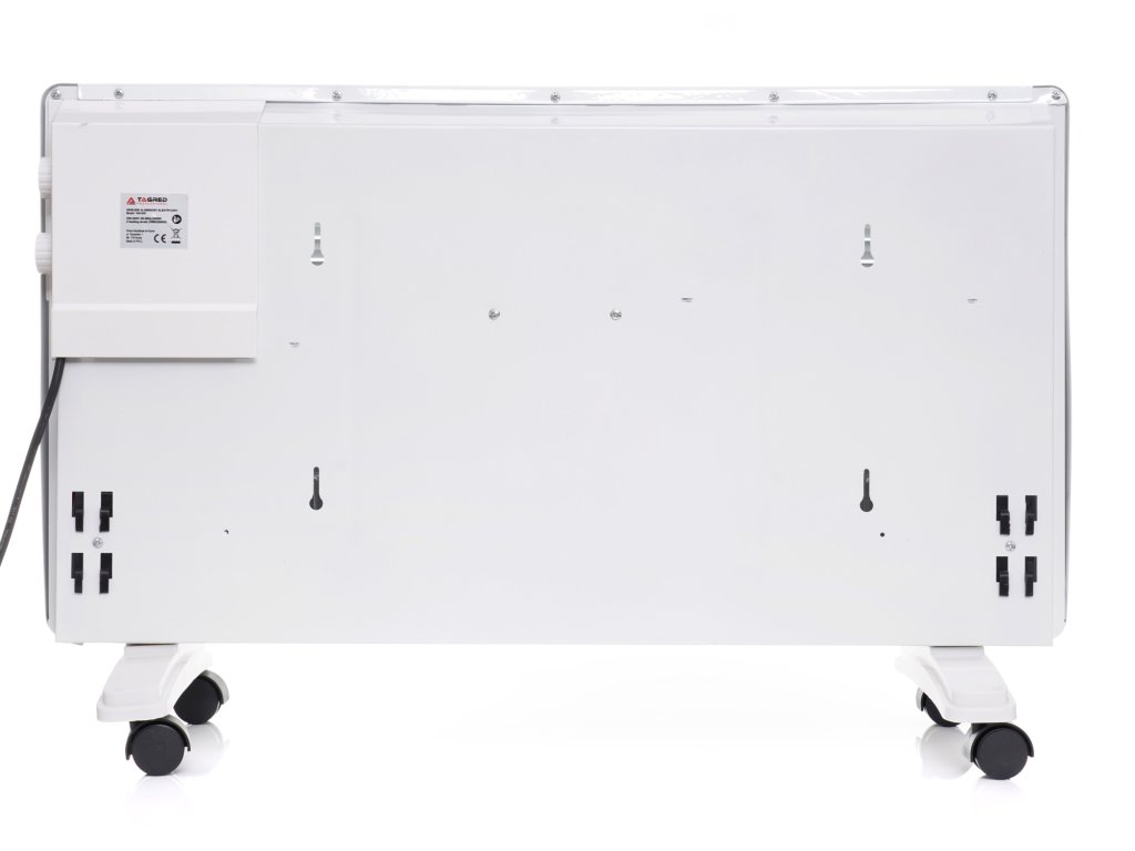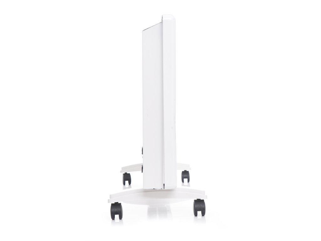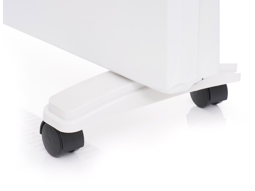 - Ohřívač lze namontovat na zeď nebo postavit na nožičky vybavené kolečky.