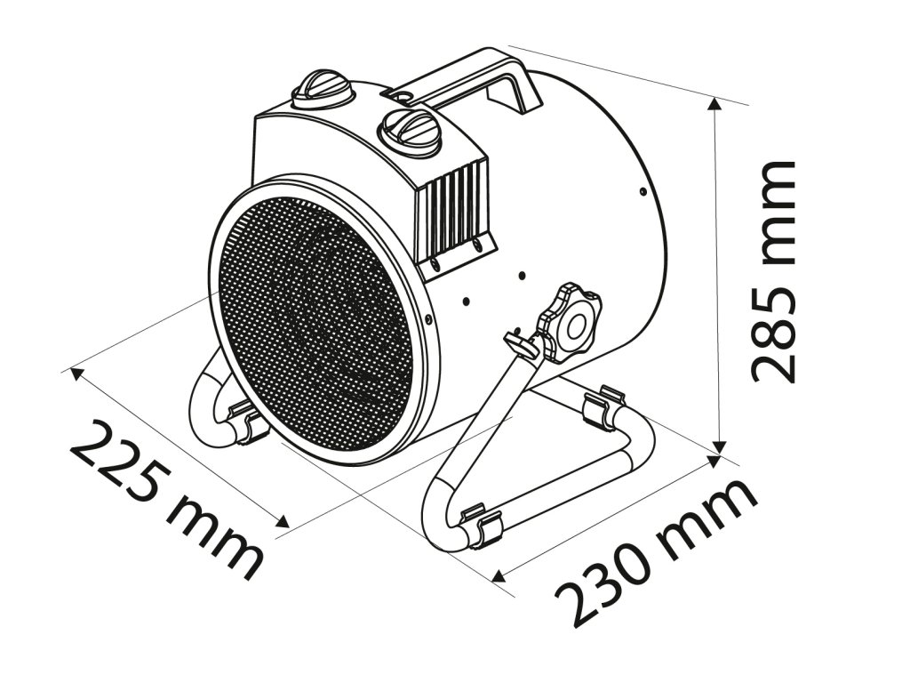 Průmyslový, elektrický, přenosný - ohřívač s výkonem 2kW a třídou vodotěsnosti IP24.