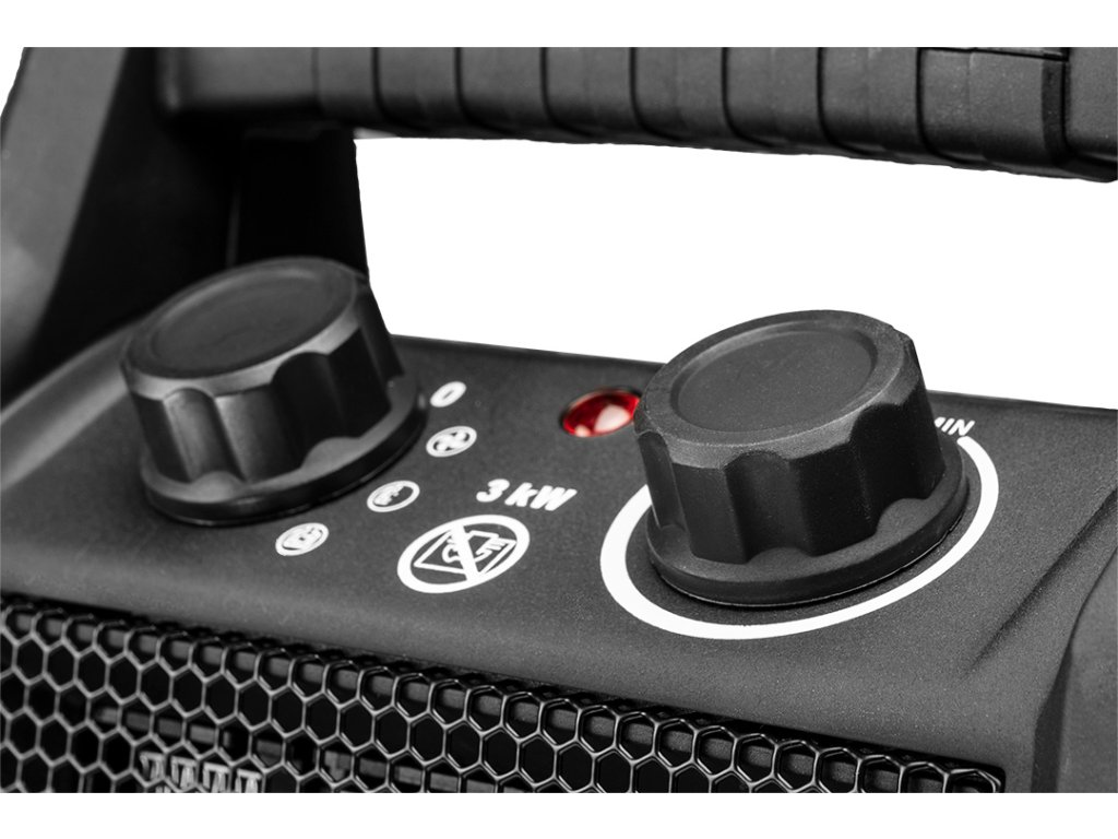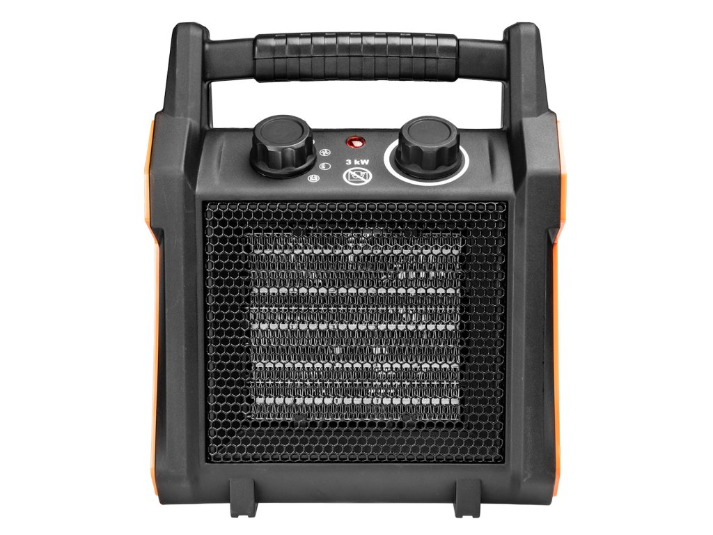 Keramický elektrický ohřívač PTC, 3 kW 90-061 od společnosti NEO je přenosný zdroj tepla, určený k vytápění místností, jako jsou dílny, garáže, domácnosti a obchody. Keramické topné těleso a silný přívod vzduchu zajišťují rychlé vytápění na větší vzdálenost při zachování nízké hladiny hluku. Ohřívač má izolovanou plastovou rukojeť pro snadnou manipulaci. Práškově lakovaný kryt chrání zařízení před korozí. Zařízení má výkon 3 kW a PTC topné těleso s dlouhou životností. Nastavitelný termostat a spínač umožňují ohřívači přizpůsobit se změnám okolní teploty a ventilátor přispívá k absenci výparů, nepříjemných pachů nebo vlhkosti.