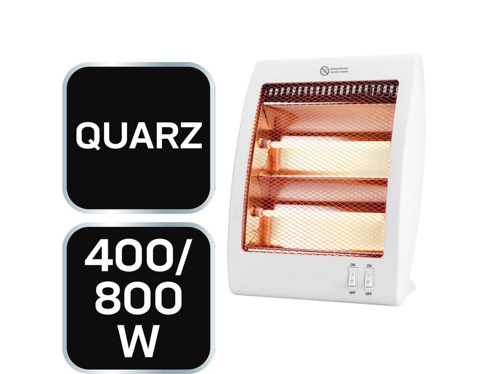 Křemenný infračervený ohřívač 400 W/800 W, 2 stupně tepelného výkonu, topné těleso – křemenný ohřívač.
