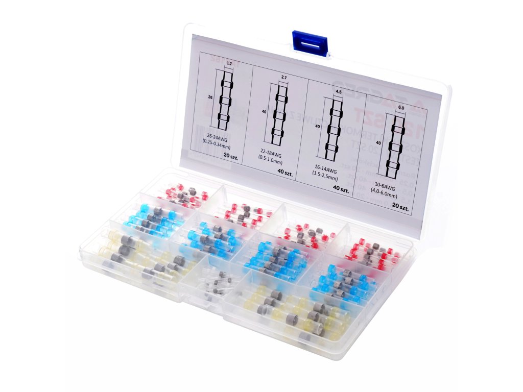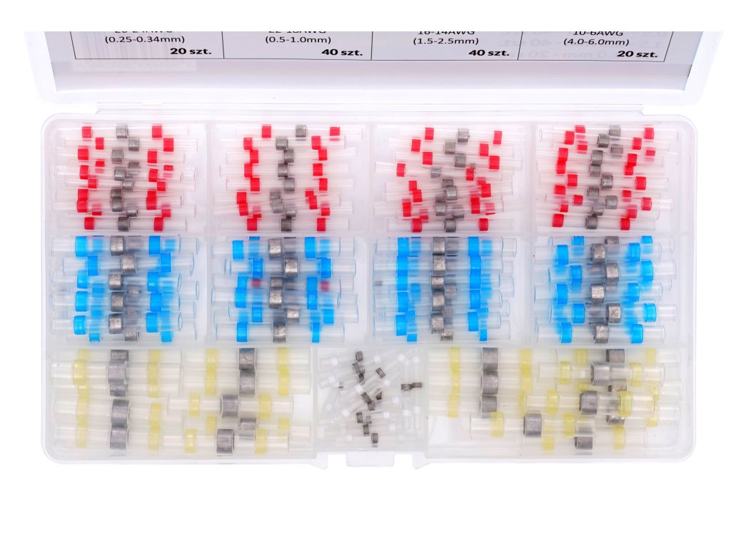 Tepelně smrštitelné pájky, trubky, tepelně smrštitelné objímky s cínem, hermetické, 120 kusů TA4162