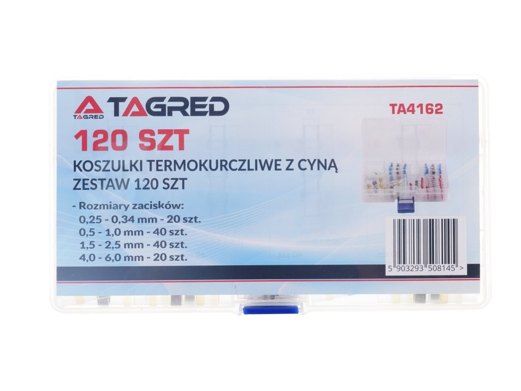 Hermetické tepelně smrštitelné pájky TAGRED se vyznačují vynikající odolností proti roztažení a mechanickému poškození, dvoustěnnýmipolyethylenovými trubkami na vnější straně a cínem ve vnitř. Uvnitř každé rychlospojky se nachází vrstva lepidla, která zpevňuje a chrání spoj před vlhkostí. Po spojení vedení není nutná žádná dodatečná izolace. Naše rychlospojky lze použít v automobilech, lodích, motocyklech a v domácnosti.