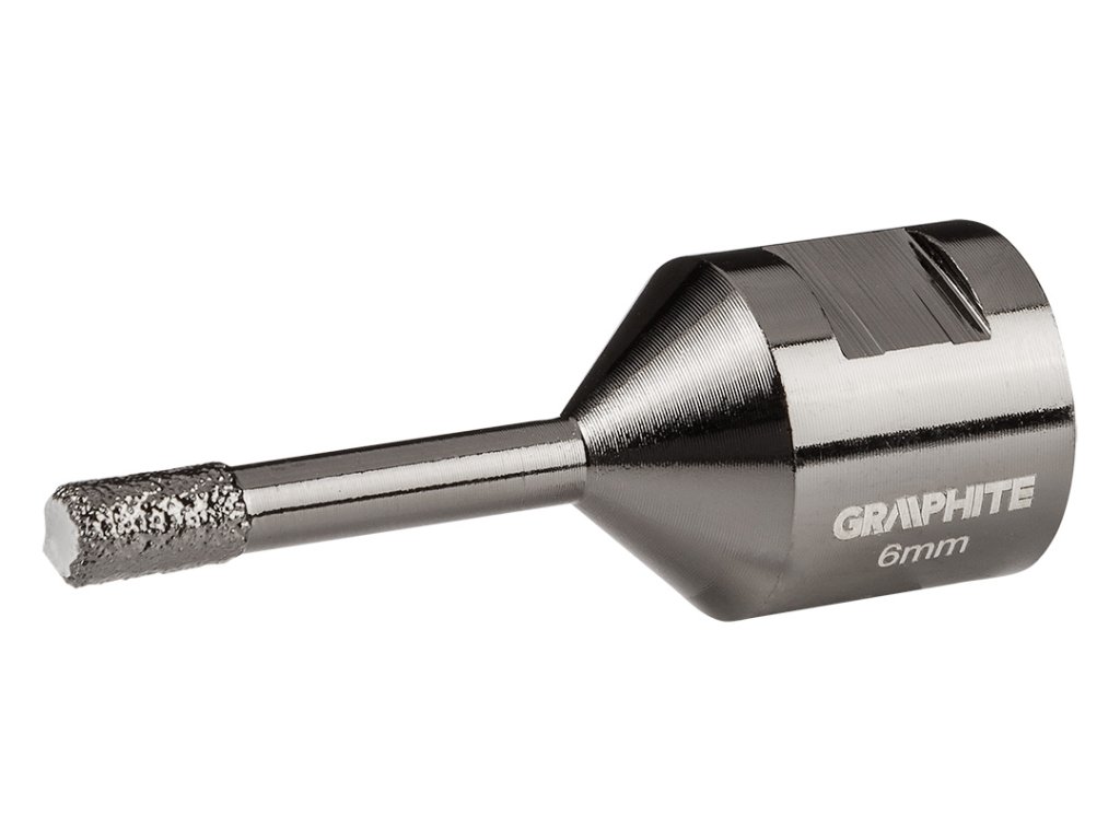 Diamantová pila na díry GRAPHITE o průměru 6 mm (ref. 55H300) se závitem M14 je určena pro přesné řezání kamene, kameniny, dlaždic, skla, asfaltu, cihel, betonu. Díky použití diamantu se řezná síla soustřeďuje na malou plochu, čímž se eliminuje riziko prasknutí nebo poškození povrchu. Vhodné pro práci v suchu. Pila na otvory je pro zvýšenou odolnost vakuově pájená.