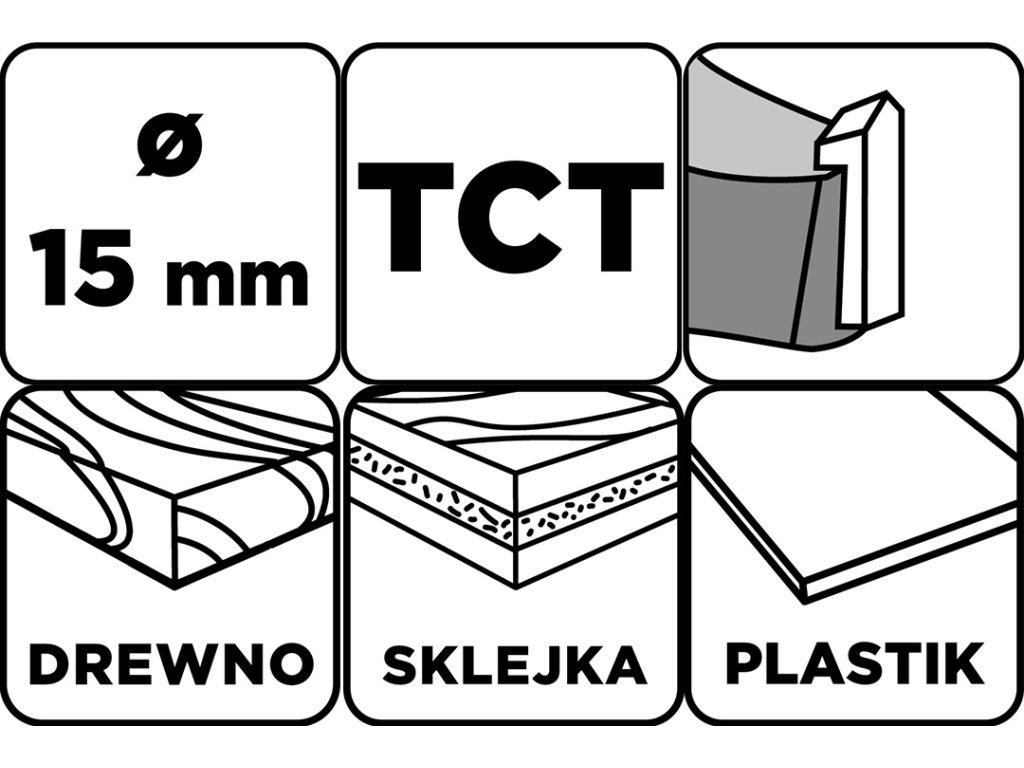 15 mm široká fréza GRAPHITE 56T600 je určena pro vrtání otvorů do dřeva, nábytkových desek a plastů. Čepele s karbidovými hroty (TCT) poskytují odolnost a přesnou povrchovou úpravu. Konstrukce nástroje umožňuje vytvářet otvory s plochým dnem a samostředící hrot umožňuje přesné umístění v materiálu. Fréza GRAPHITE má středové a vnější řezné čepele, celkovou délku 85 mm a válcovou stopku.