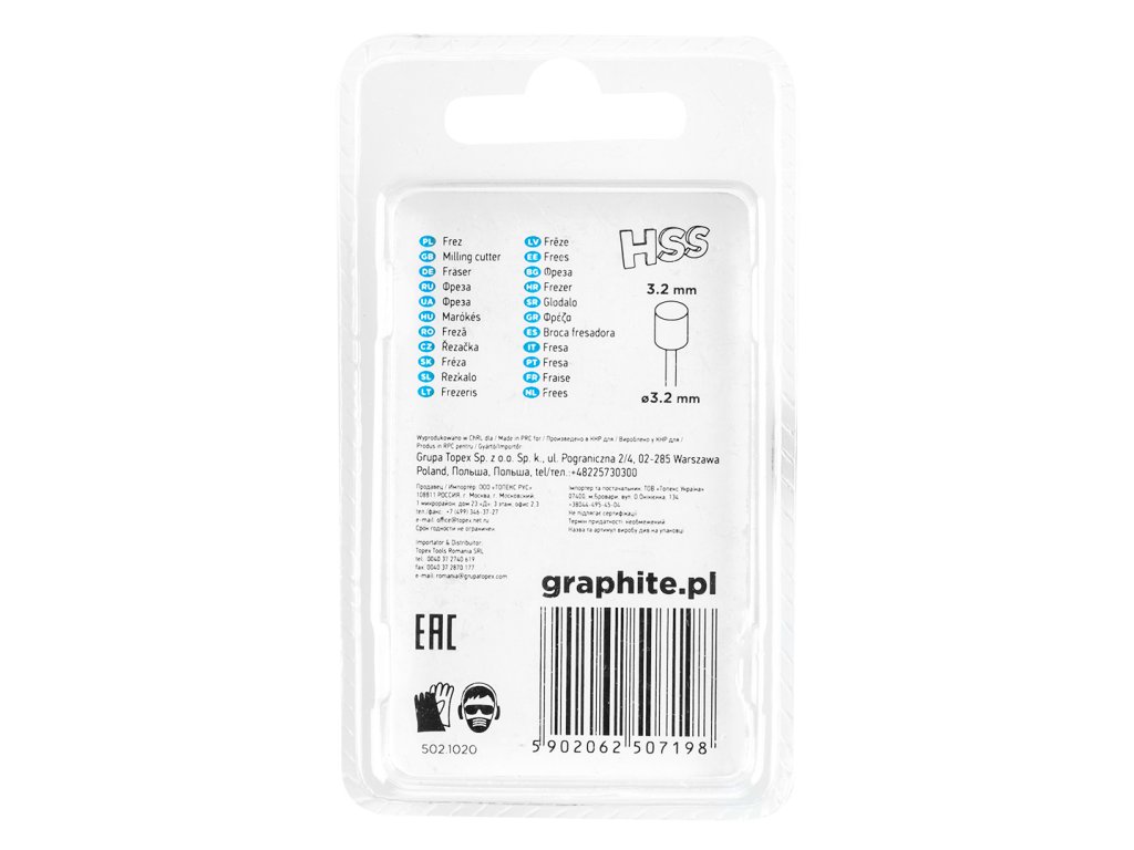 HSS GRAPHITE fréza (ref. 55H062) válcový průměr 3,2 mm. Sada obsahuje 2 kusy. Určeno pro použití s mini mlýnkem. Vhodné pro tvarování, dutinkování, drážkování, vysekávání, vytváření závitových otvorů v různých materiálech. Může se používat na kov, plast, sklolaminát a dřevo.