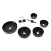 Sada vykružováků značky Geko je určených na vyřezávání otvorů v sádrokartonových deskách, ve dřevě a dřevotřísce. Sadu zaručeně využijete i při vyřezávání otvorů do plastu. V soupravě se nachází 5 vykružováků s průměrem 64, 76, 89, 102, 127 milimetrů. S každým vykružováků můžete udělat otvor hluboký až 25 mm. Na práci budete potřebovat i adaptér s vodicím vrtákem o průměru 6 mm a imbusový klíč, které se samozřejmě nacházejí v balení.