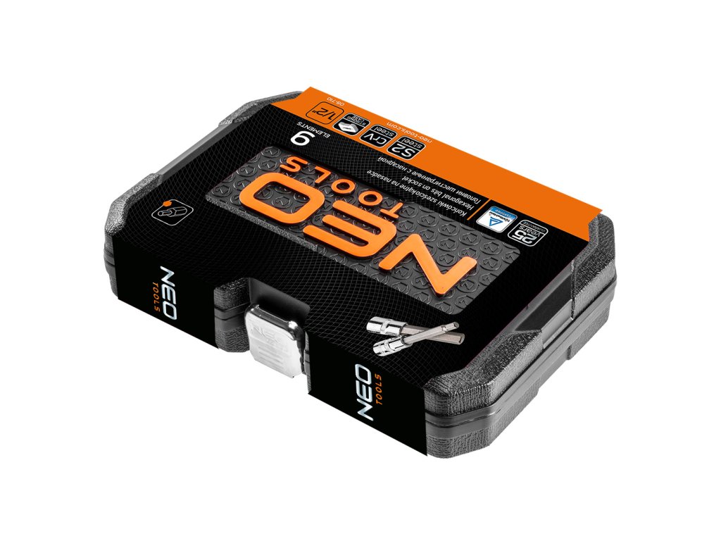 Sada šestihranných bitů na 1/2" nástrčné hlavice NEO (ref. 08-706) se skládá z 9 prvků (ve velikostech od H4 do H17, délka 100 mm). Zásuvky jsou vyrobeny z kvalitní chrom-vanadové oceli. Vysoká odolnost Šroubovací bitů je. kufříku. Kvalitu nářadí potvrzuje certifikát TÜV a 25letá záruka výrobce.