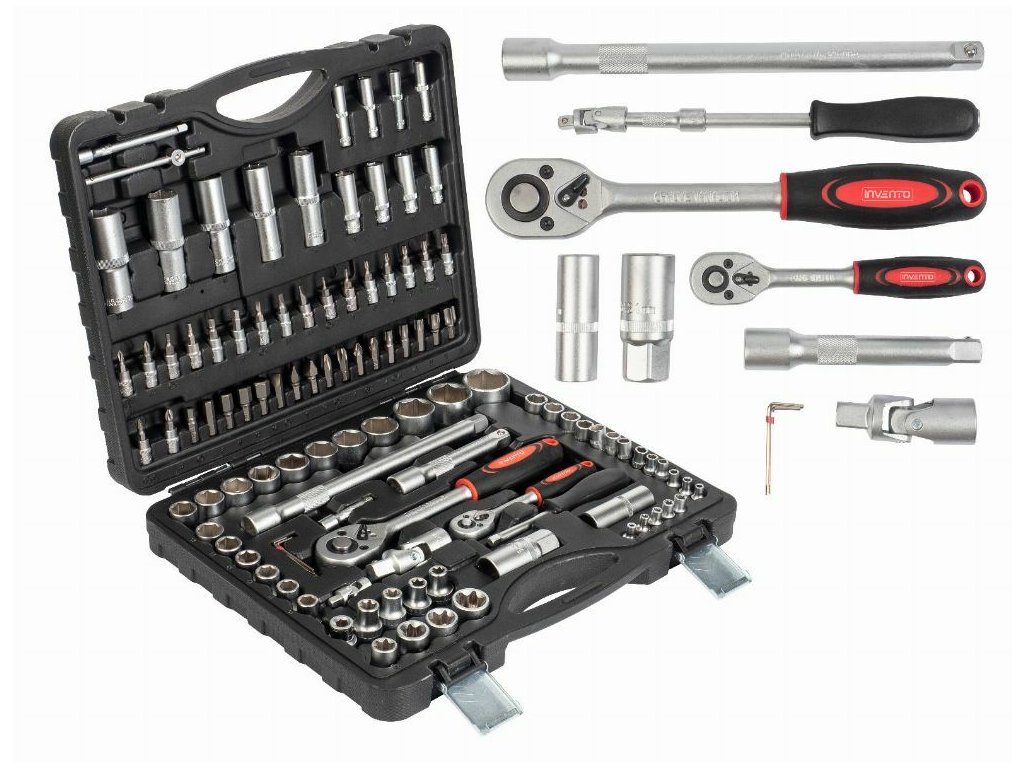 Sada nástrčných klíčů 1/2" a 1/4" se 108 prvky. Vyrobeno z kvalitní chrom-vanadiové oceli.