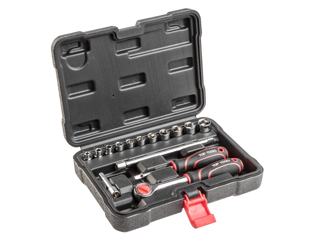 Sada nástrčných klíčů 1/4" (38D525) 15 kusů obsahuje sadu šestihranných nástrčných hlavic 1/4" s ráčnou a šroubovákem. Kompletní sada je uložena v praktickém plastovém kufříku.