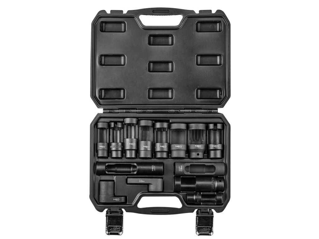 Zásuvky pro lambda sondy a vstřikovače NEO, sada 14 kusů specializovaných zásuvek umožňujících provoz lambda sond a vstřikovačů různých typů v automobilech populárních značek.