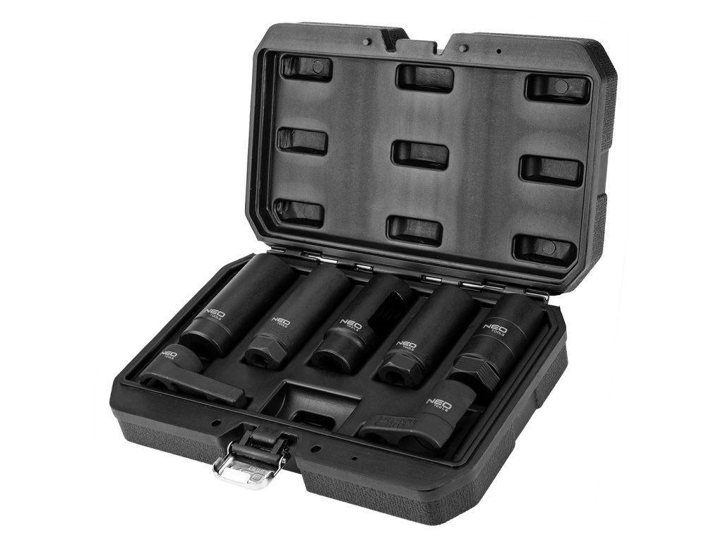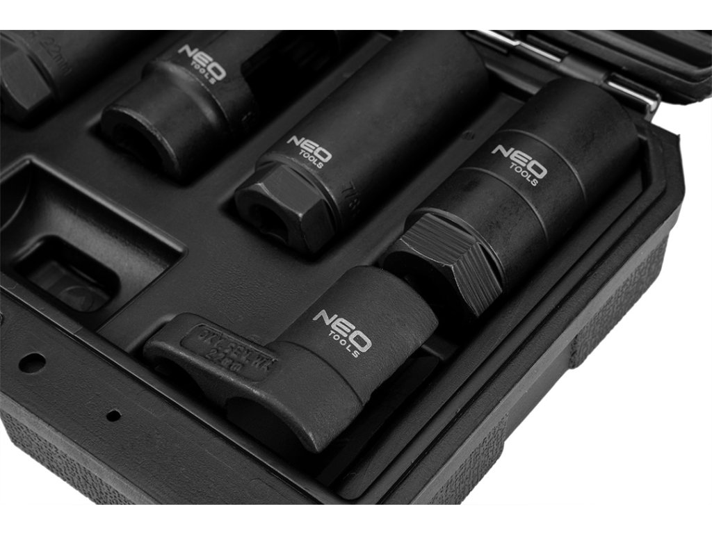 Zásuvky pro lambda sondy a vstřikovače NEO, sada 7 kusů speciálních zásuvek umožňujících provoz lambda sond různých typů v automobilech populárních značek.