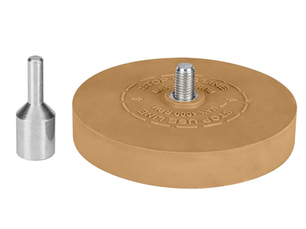 Kotouč pro odstraňování lepidla GRAPHITE 88 mm 55H811 je účinný nástroj o průměru 88 mm a tloušťce 15 mm, určený pro profesionální i amatérské odstraňování nálepek a zbytků lepidla z karoserií. Kotouč je vyroben z robustní, ale zároveň měkké pryže, která nepoškrábe povrch. Vyznačuje se maximální rychlostí 4 000 otáček za minutu. Osvědčí se nejen při použití v automobilovém průmyslu.