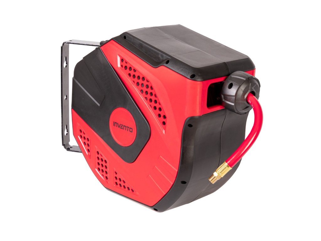 Brand: INVENTO Casing Material: PP Casting Barva: červená-černá Hose Length: 10+1m Hose barva: červená Hose Material: PVC Hose Velikost: 3/8"( 9.5 x 15.8mm) Fitting: 1/4"BSPT mužské thread Working Pressure: 150psi (150psi) (30 barů) Pracovní temperature: -5°C až + 55°C Bracket (steel) a šrouby jsou zahrnuty Velikost:33.5*21*33.5cm W.: 6kgs W.: 5.4kgs Smoothly rewind the hose automatically. Automatické zámky na jedné 50cm Slow retraction and free stop Hřídelní systémový systém Wall montovaný a 180 swivel CE & ROHS Approval Manual included