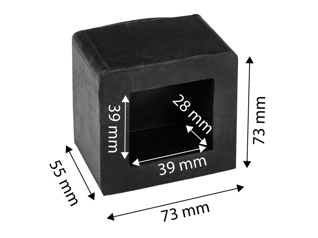 Gumová čepice, kladivo na dláždění 1 kg 26-000 značky NEO TOOLS je pružná gumová čepice doporučená pro kladivo na dláždění o hmotnosti 1 kg. Má vnější rozměry 7,3 x 7,3 x 5,5 cm a vnitřní rozměry 3,9 x 3,9 x 2,8 cm. Jeho hmotnost je 442 g. Překrytí značky NEO TOOLS poskytuje možnost jemného úderu do dlažebních prvků, dlažebních desek a obrubníků. Je nezbytnou součástí výbavy každého stavitele a realizátora dlažby.