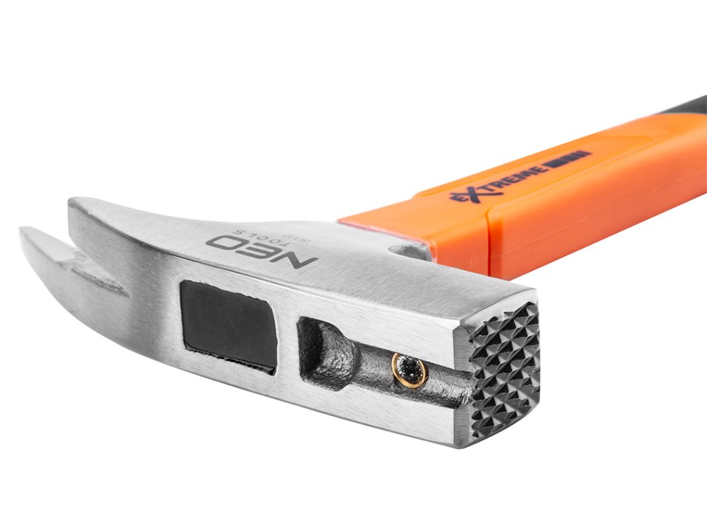 600 g Truhlářské kladivo NEO (ref. 25-131) určené především pro přesné zatloukání hřebíků. Rukojeť je vyrobena ze skelných vláken, materiálu mimořádně odolného vůči změnám teploty, vlhkosti a mechanickému poškození, což je důležité při práci v dílně. Ergonomicky tvarovaná pogumovaná rukojeť poskytuje vysoký pracovní komfort. Stopka je vykovaná z vysoce kvalitní uhlíkové oceli, což umožňuje dosáhnout vysoké tvrdosti povrchu. Certifikát TÜV Rheinland a výroba dle německé normy DIN 7239 zaručují spolehlivost výrobku. Značka NEO splňuje očekávání profesionálů.