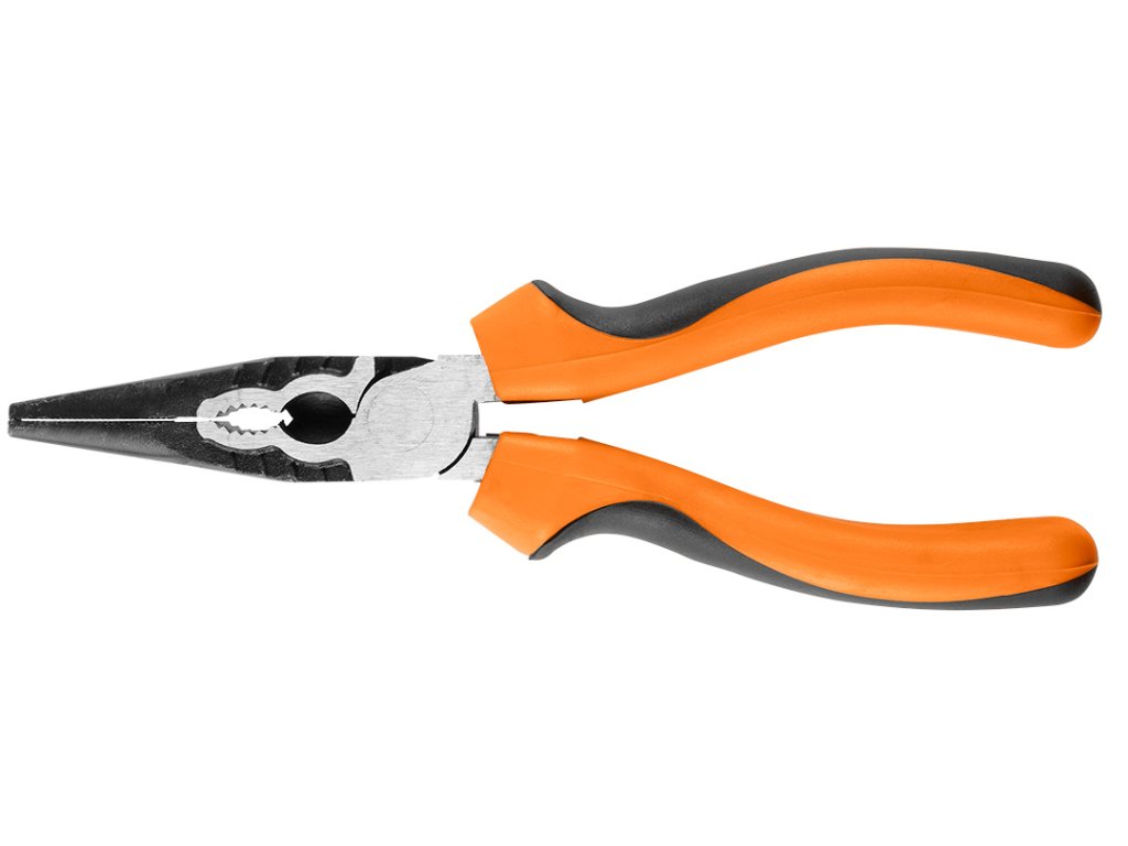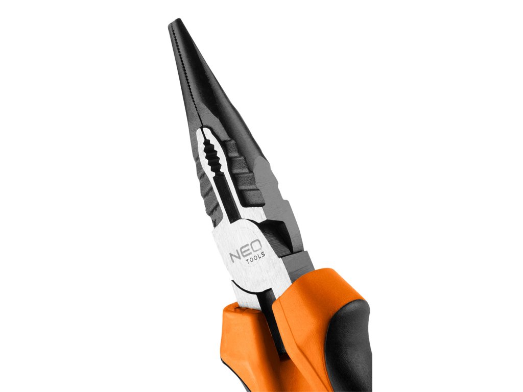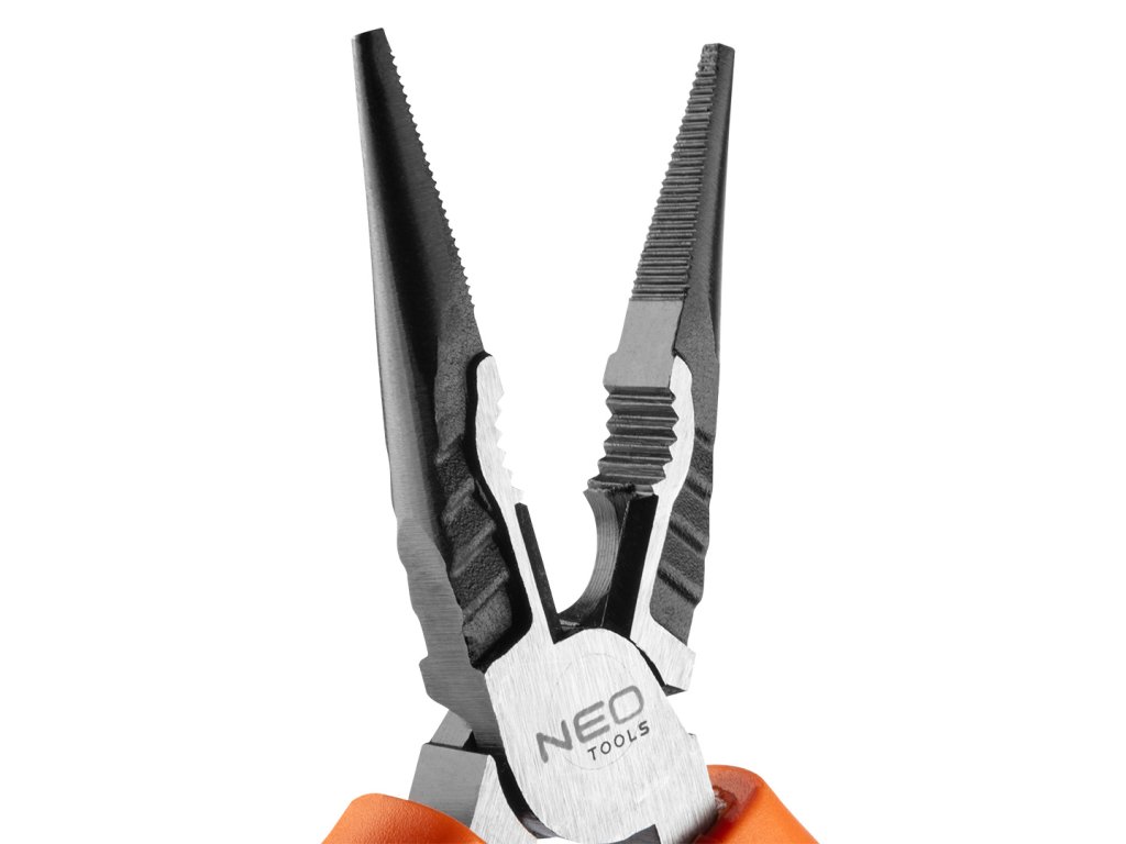 Podlouhlé rovné kleště NEO 40 % FS (ref. 01-154), dlouhé 160 mm, jsou určeny k uchopení různých předmětů. Jsou vyrobeny z vysoce kvalitní CrNi oceli s antikorozní ochranou. Dvousložková rukojeť s pryžovými prvky zabraňuje sklouznutí ruky při používání nástroje. Zoubkovaný povrch čelistí usnadňuje odšroubování matic a šroubů. Konstrukce kleští umožňuje snížit sílu vyvíjenou na tlak o 40 %.