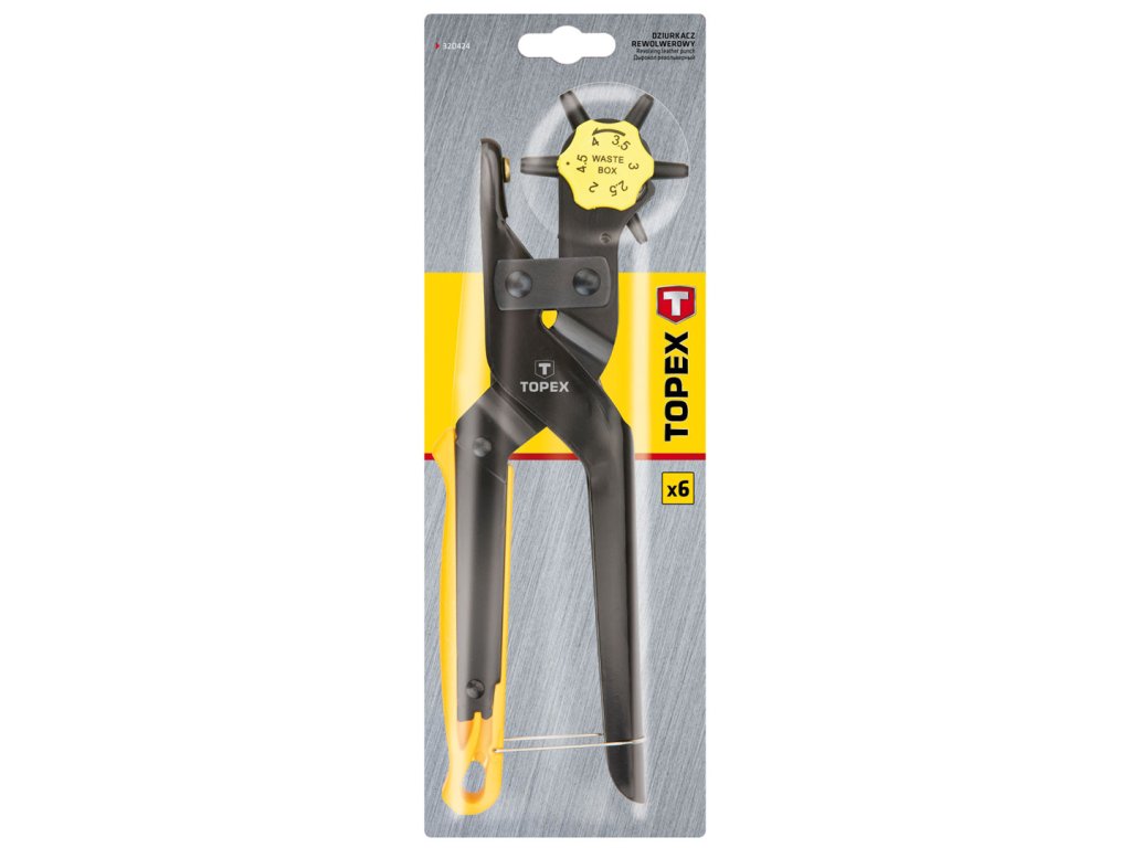 Revolverový razník TOPEX (ref. 32D424), délka 240 mm a pracovní rozsah 2 - 4,5 mm. Díky tvrzeným hrotům je vyřezávání otvorů bezproblémové. Ergonomická rukojeť dobře padne do ruky, což zvyšuje pohodlí při práci. Značka TOPEX je určena pro domácí kutily.