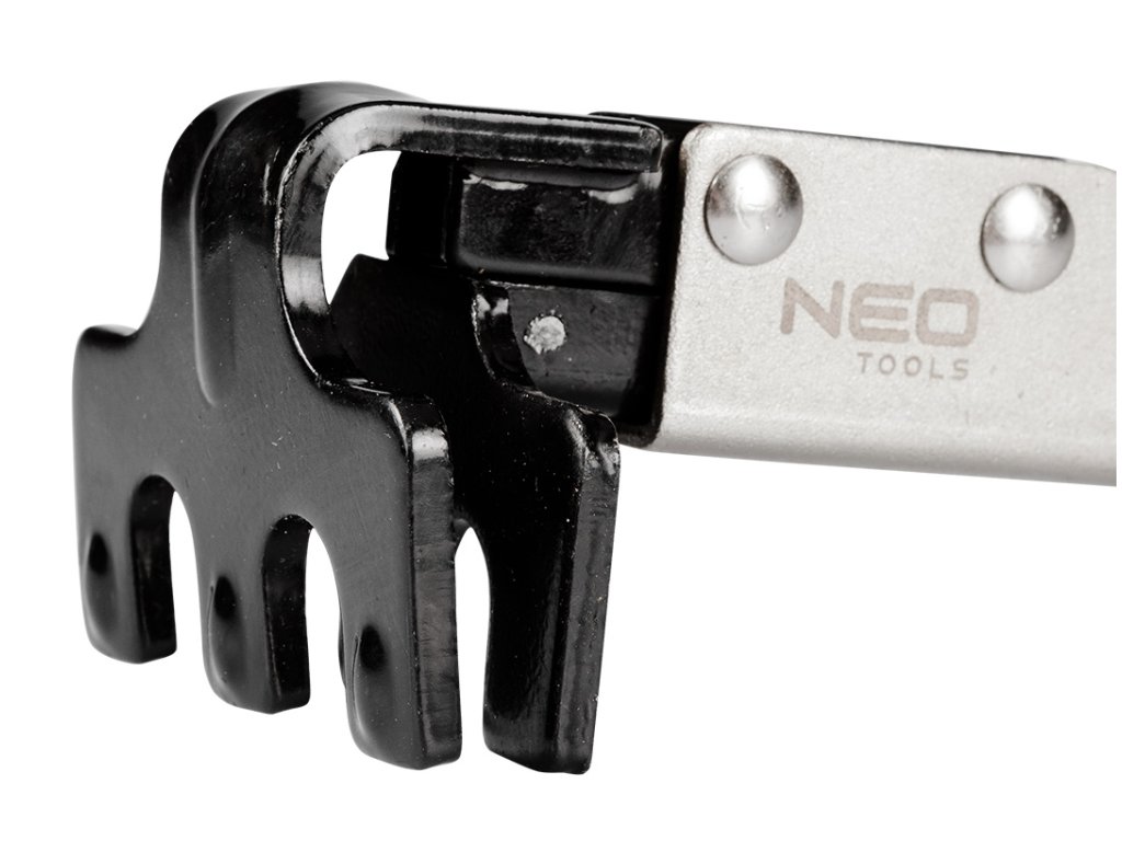 Kleště na plech typ W NEO, délka 195 mm a maximální vzdálenost 25 mm, určené pro práci s plechem, svařování a konstrukci. Kleště jsou vyrobeny z tvrzené legované oceli. Vyztužená konstrukce byla vyrobena z lisovaného plechu. Kleště mají pákový mechanismus s nastavením blokování a mačkání, který mění příčný pohyb rukojeti na podélný pohyb čelistí. Kleště uzpůsobené pro práci ve stísněných prostorách umožňují přesnou montáž spojovaných prvků.