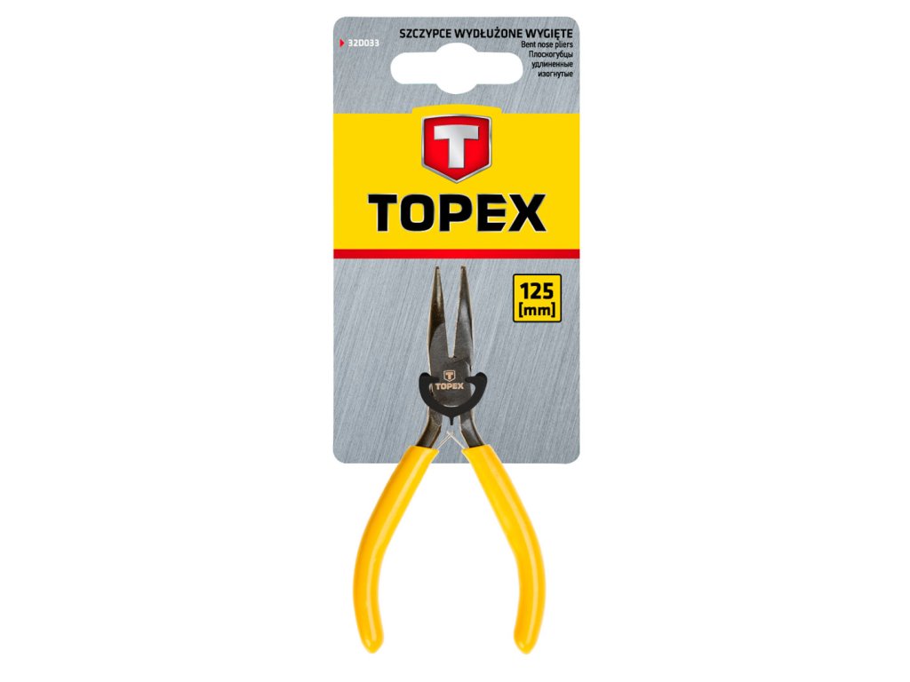 Přesné podlouhlé kleště TOPEX (ref. 32D033) vyrobené z kalené uhlíkové oceli. Ergonomické rukojeti pokryté protiskluzovým materiálem zajišťují pohodlí a bezpečnost při práci. Výrobek se dokonale přizpůsobí tvaru ruky. Značka TOPEX je určena pro domácí kutily.