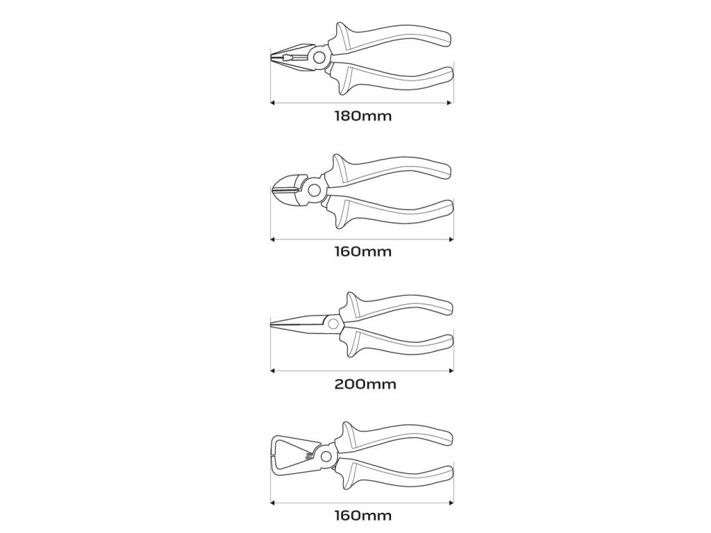 Sada 4ks elektrikářských kleští certifikovaných pro práci pod napětím do 1000V. Materiál: CrV.