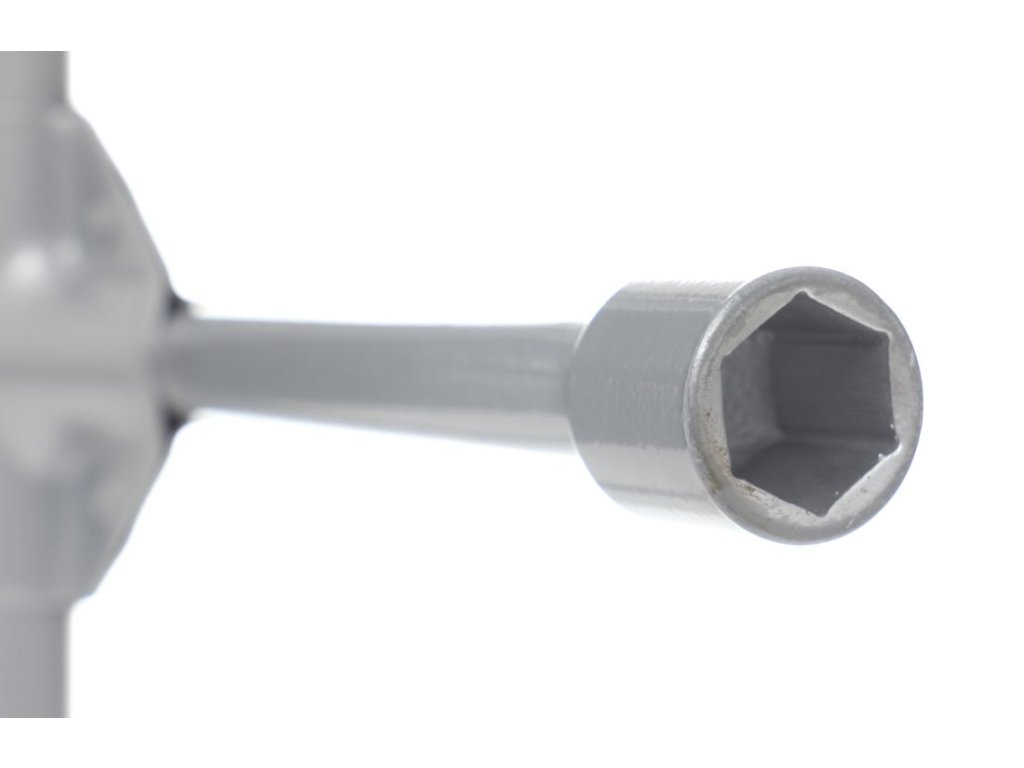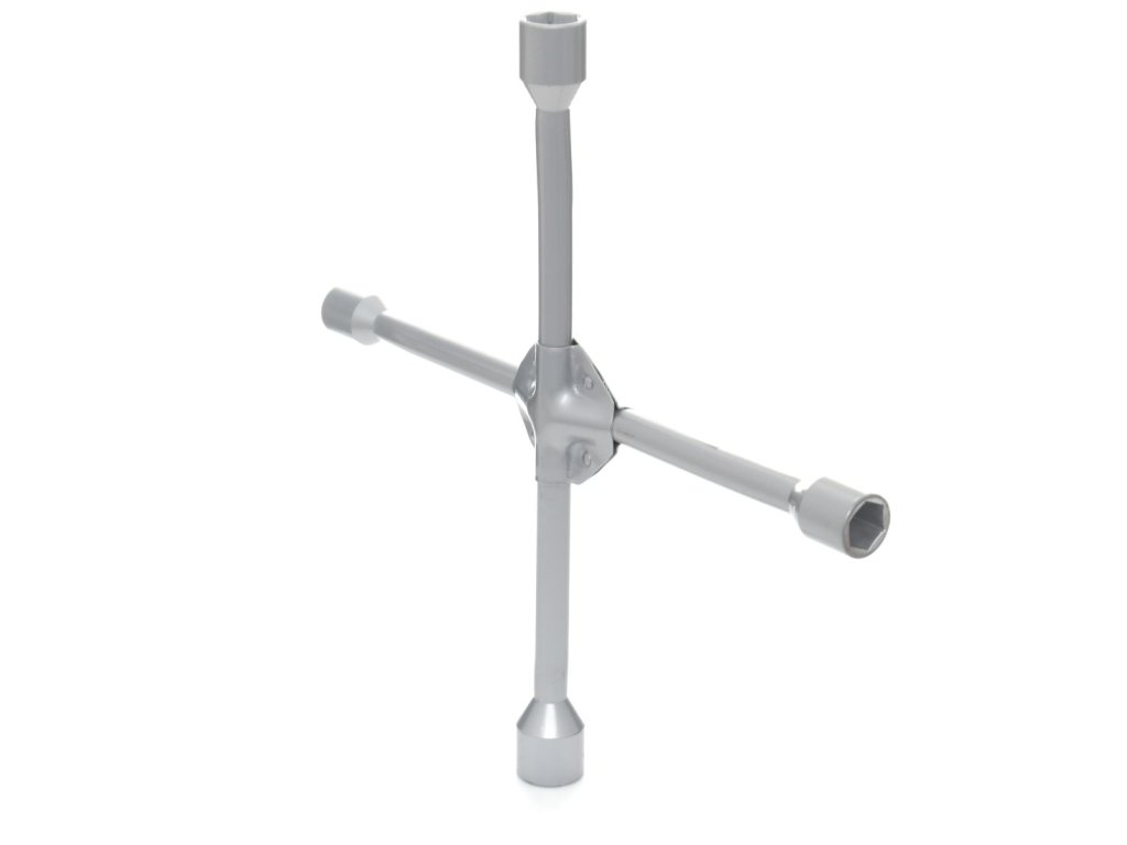 Vysoce kvalitní klíč doporučený pro domácí výměny kol a jako příslušenství pro osobní a dodávkové automobily. Zvládne i nejvíce zaseknuté šrouby! Má 4 ramena s imbusovými hlavami, 4 metrické velikosti 17 mm, 19 mm, 21 mm a 23 mm.