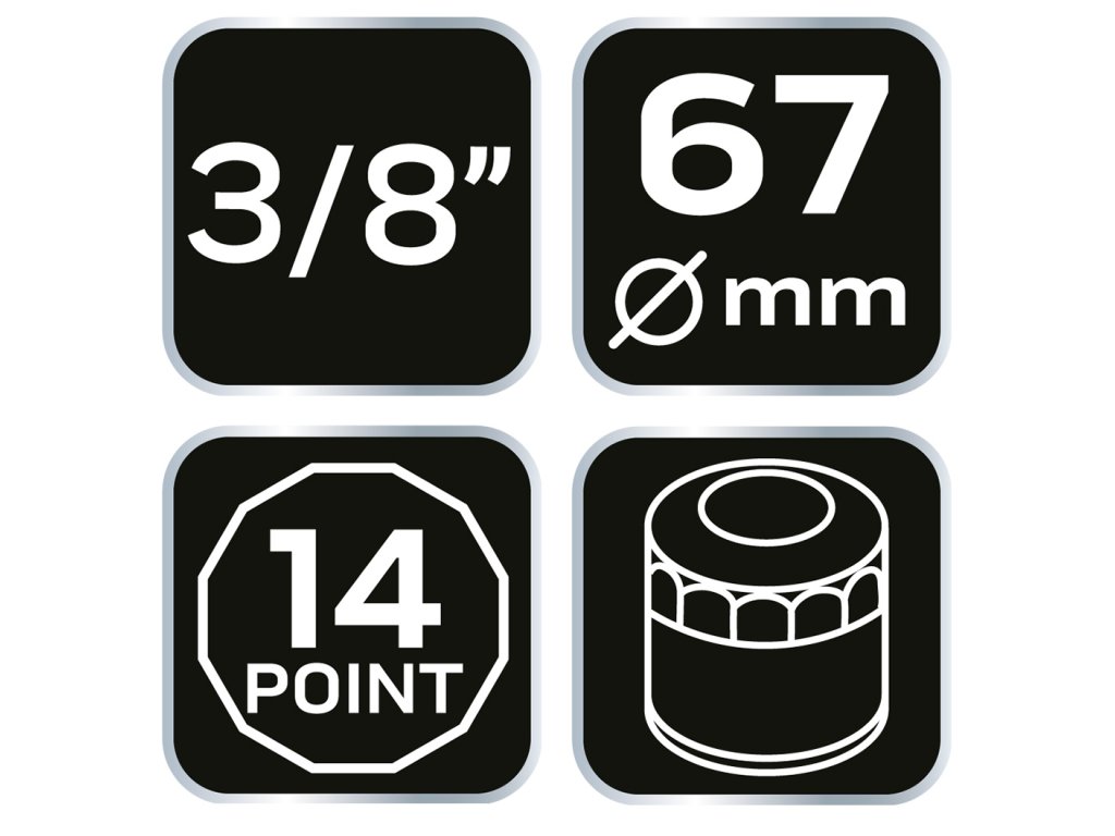 Klíč na olejové filtry 67 mm, 14 úhlů, 3/8" čtyřhran